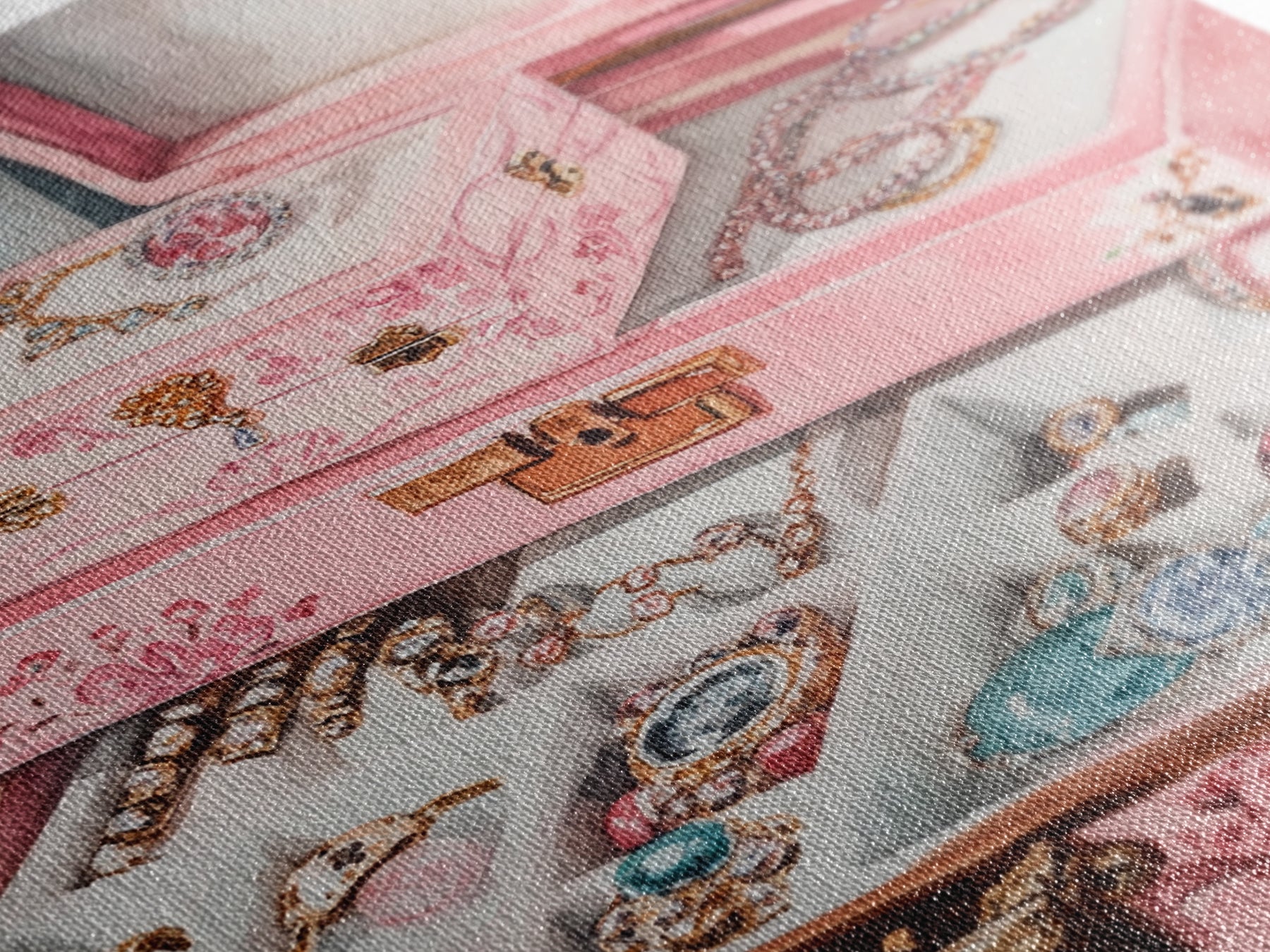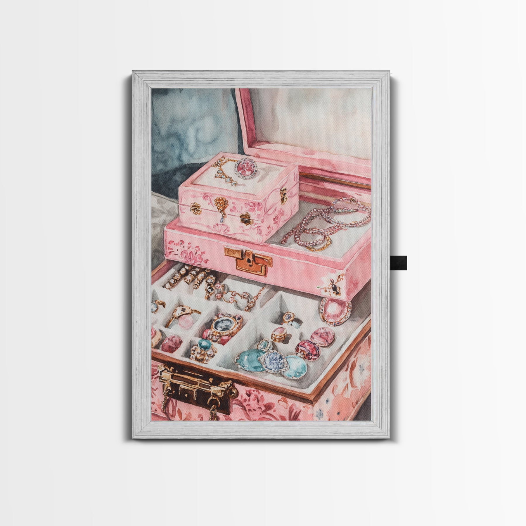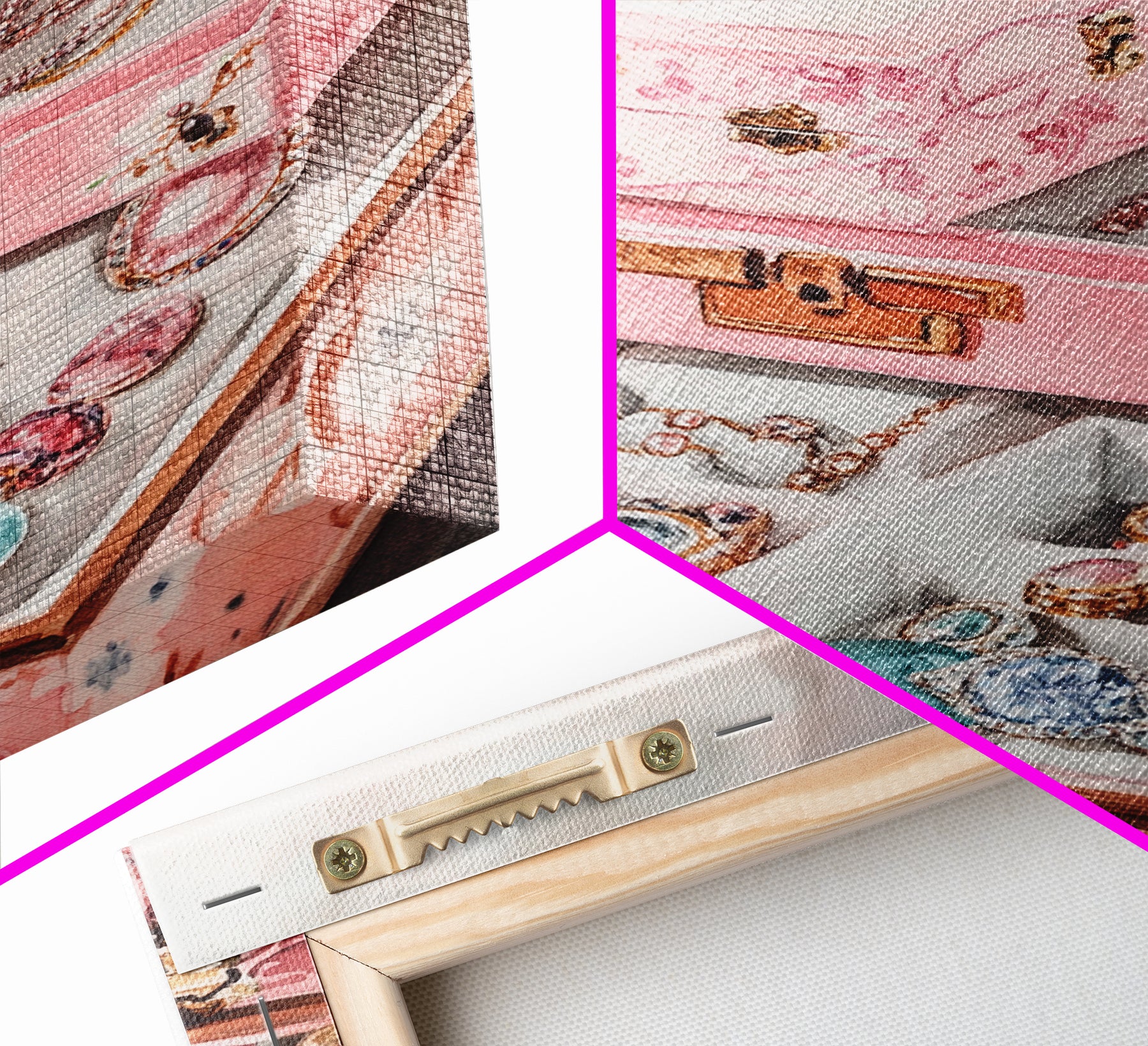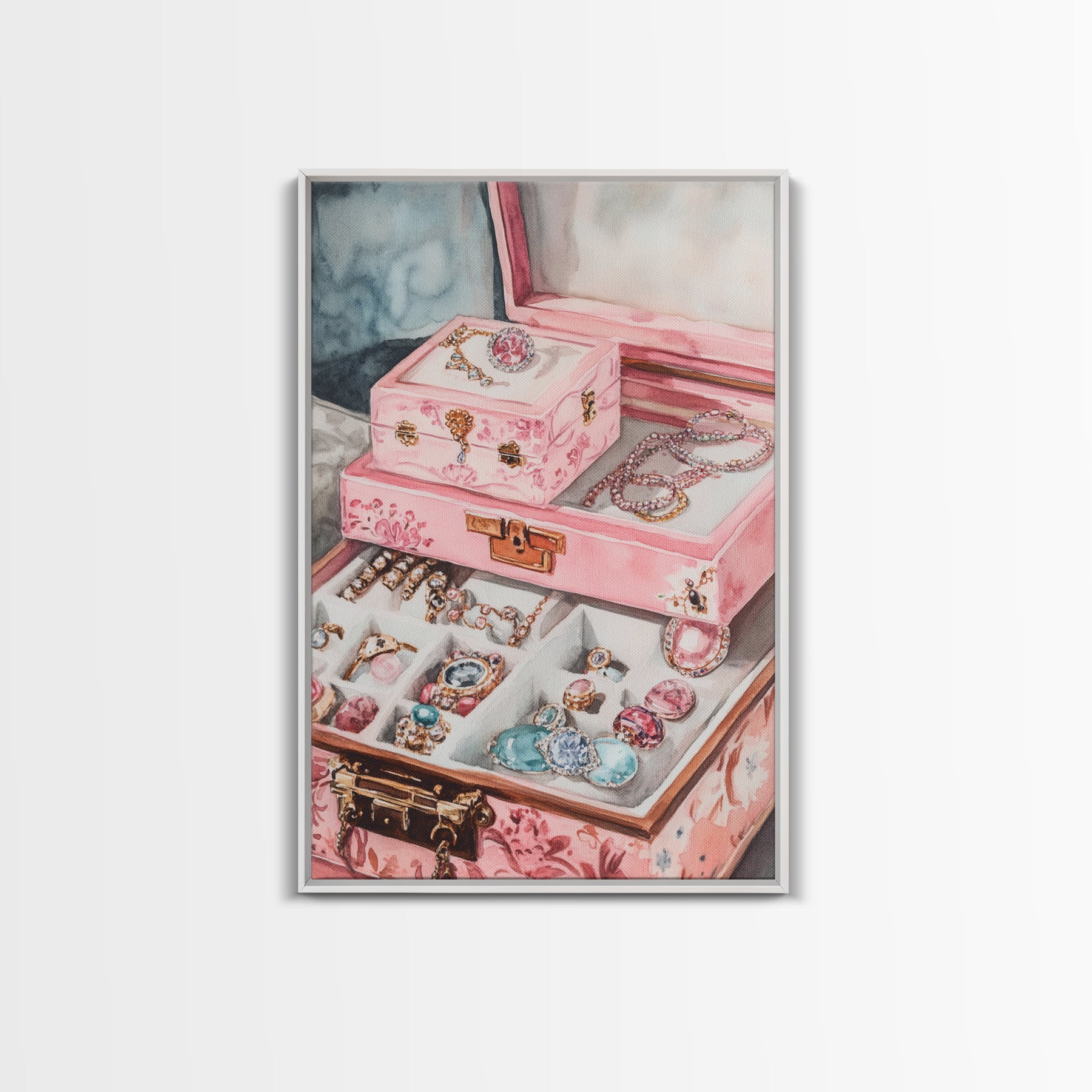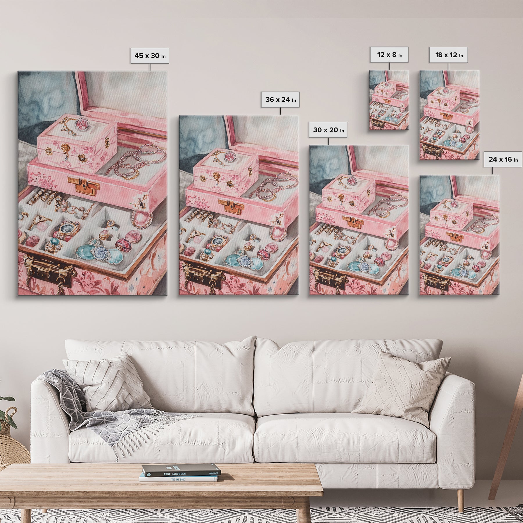 Romantic Jewelry Display Canvas Print Pink Wall Art Whimsical Decor Light Pink Dorm Art Bedroom Gift Idea Coastal Cowgirl Art