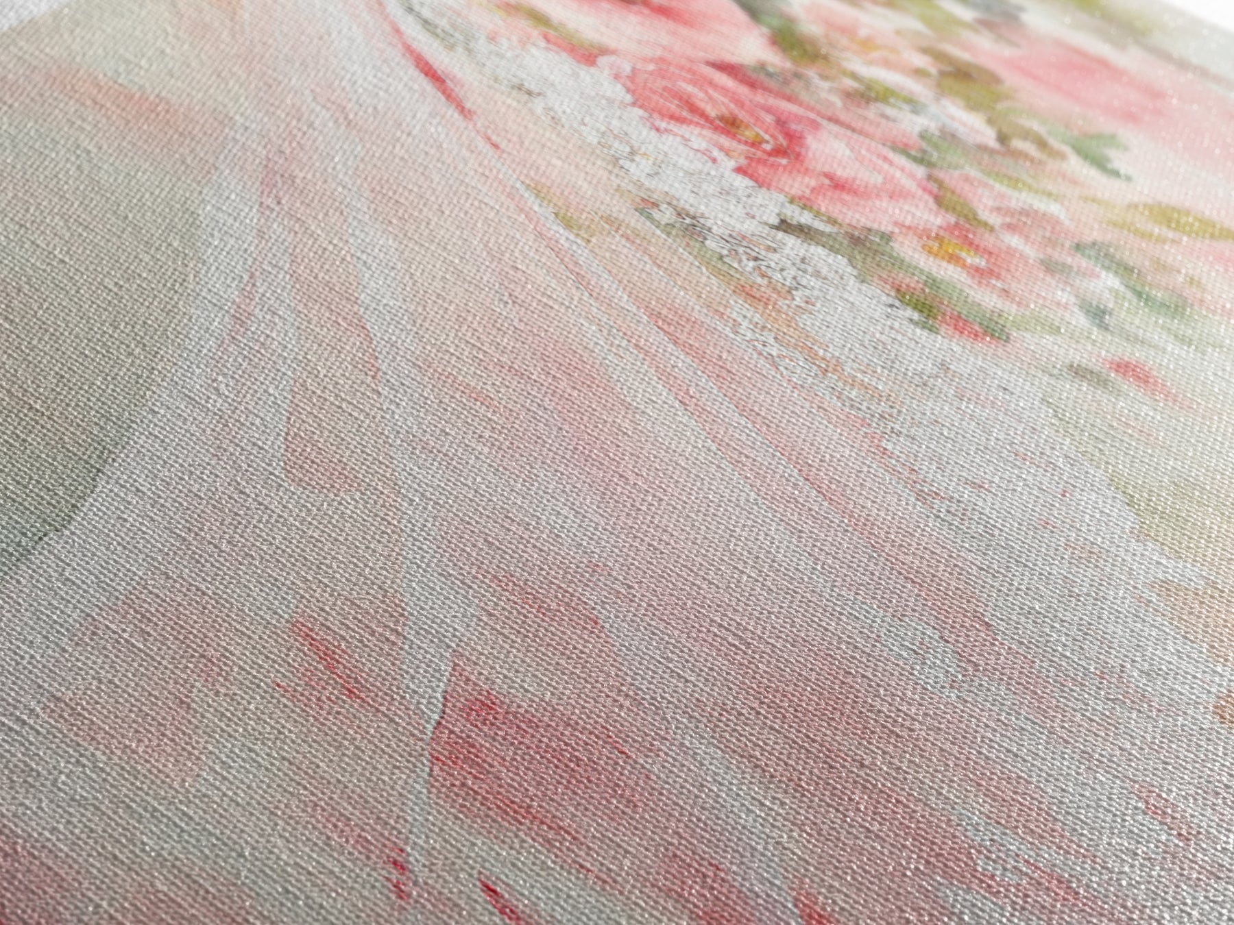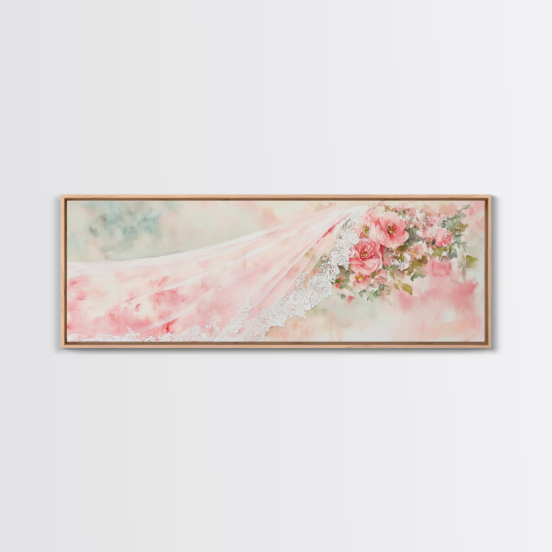 Romantic Rose Painting Canvas Print Featuring Bridal Lace, Botanical Prints Ideal Bedroom Art or Wedding Gift Idea