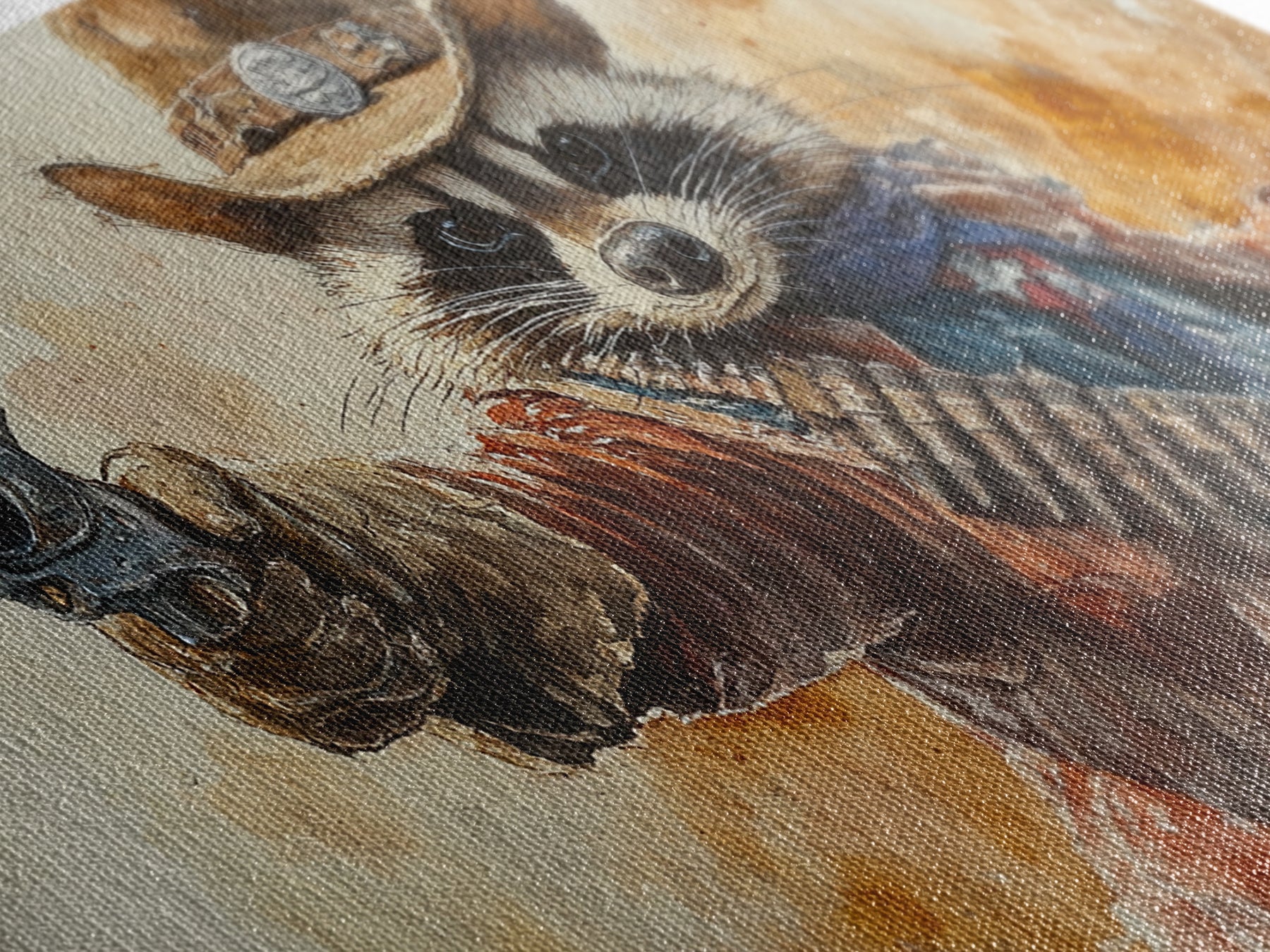 Rootin' Tootin' Cowboy Shootin' Wildwest Cowboy Raccoon Canvas Print - Racoon Painting - Cowboy Raccoon - Wild West Art