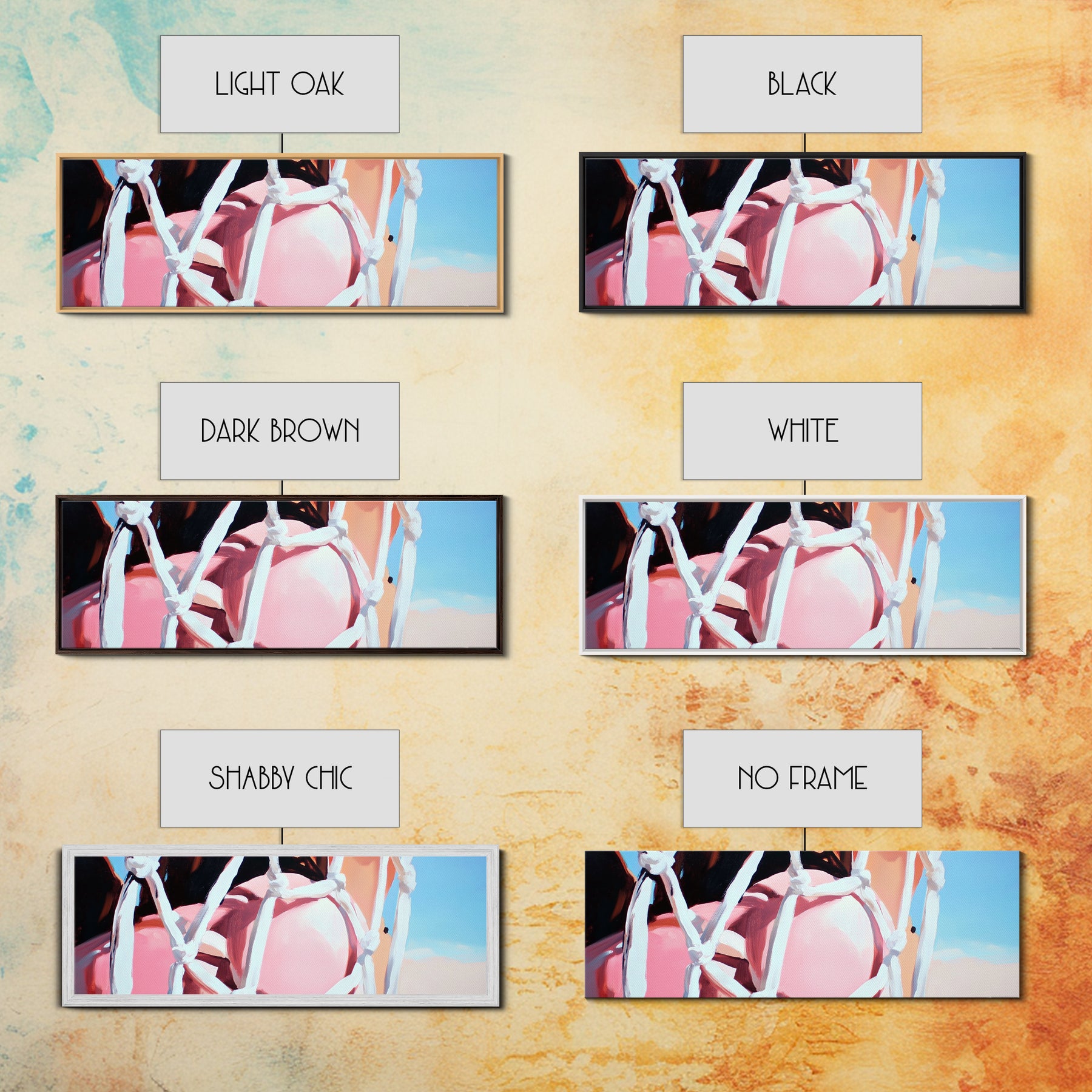 *Optional frames add a total of 1.5 inches to each dimension, for example a 10x20 canvas with a frame will be 11.5 by 21.5 inches total. All framed canvas are 1.5" total depth.