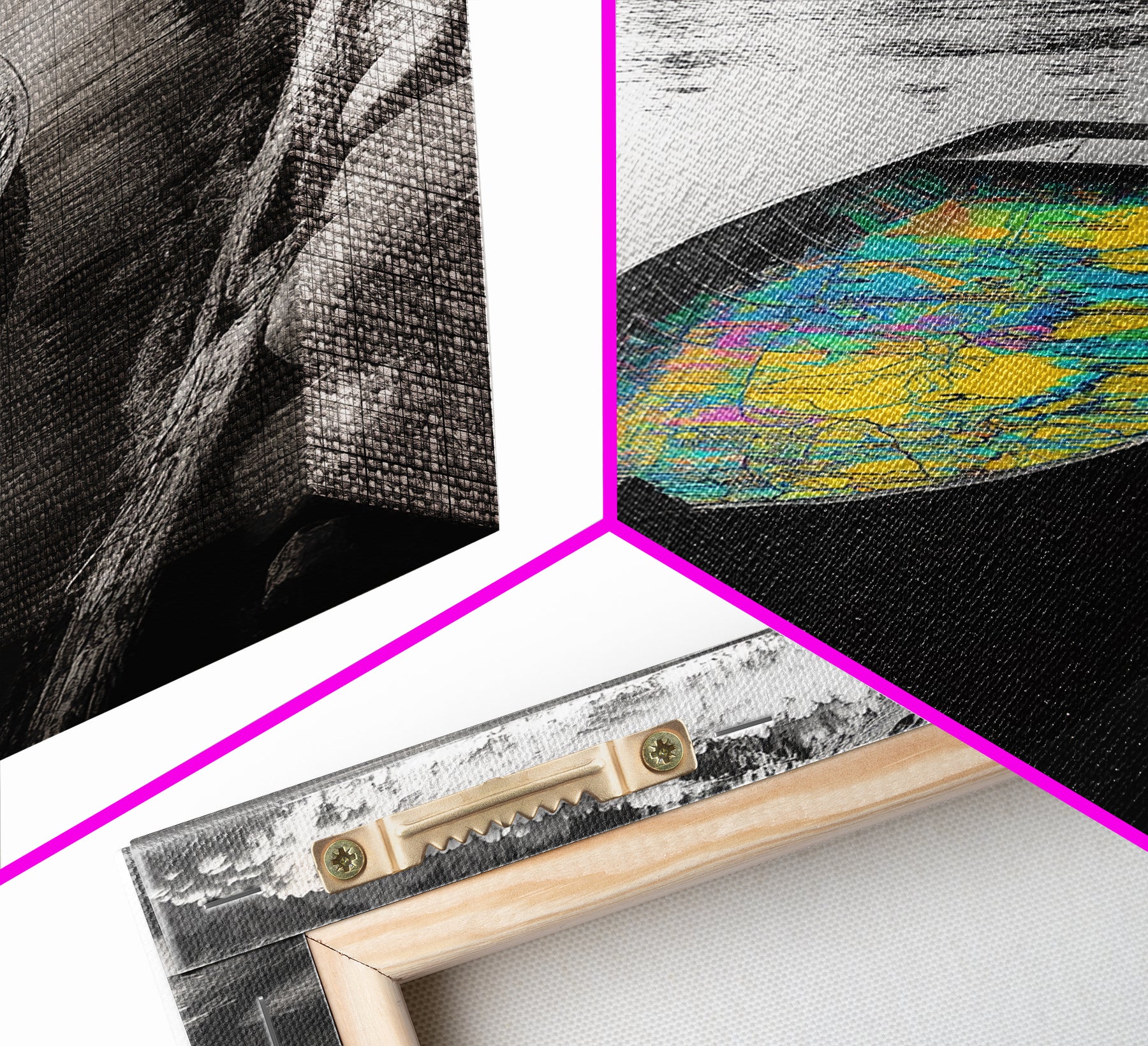 Hello and thank you for taking the time to view our modern high quality giclée artwork! We offer both posters and stretched canvas prints. Our posters are printed on Ultra Matte 60 lb / 230 GSM high quality photo paper, with a thickness of 10 mil. Our canvases are printed on museum grade 350 GSM canvas material with ECO friendly archival grade ink, then hand stretched and stapled over premium, FSC certified and shrink resistant frames. Designed and built to last a lifetime.