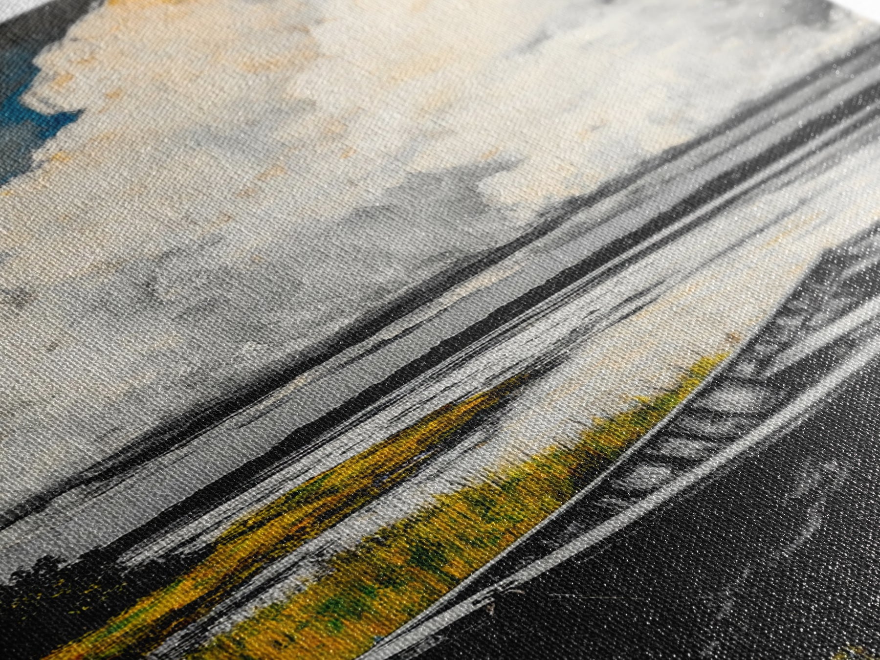 Most of our canvases are made in the USA, with the exception of canvases ordered with the light oak unstained frames, and any large canvases (24x48, 30x60, 16x48 and 20x60) ordered WITH a frame. These are temporarily made in and shipped from Europe, while we try to find a more consistent supplier in the USA.