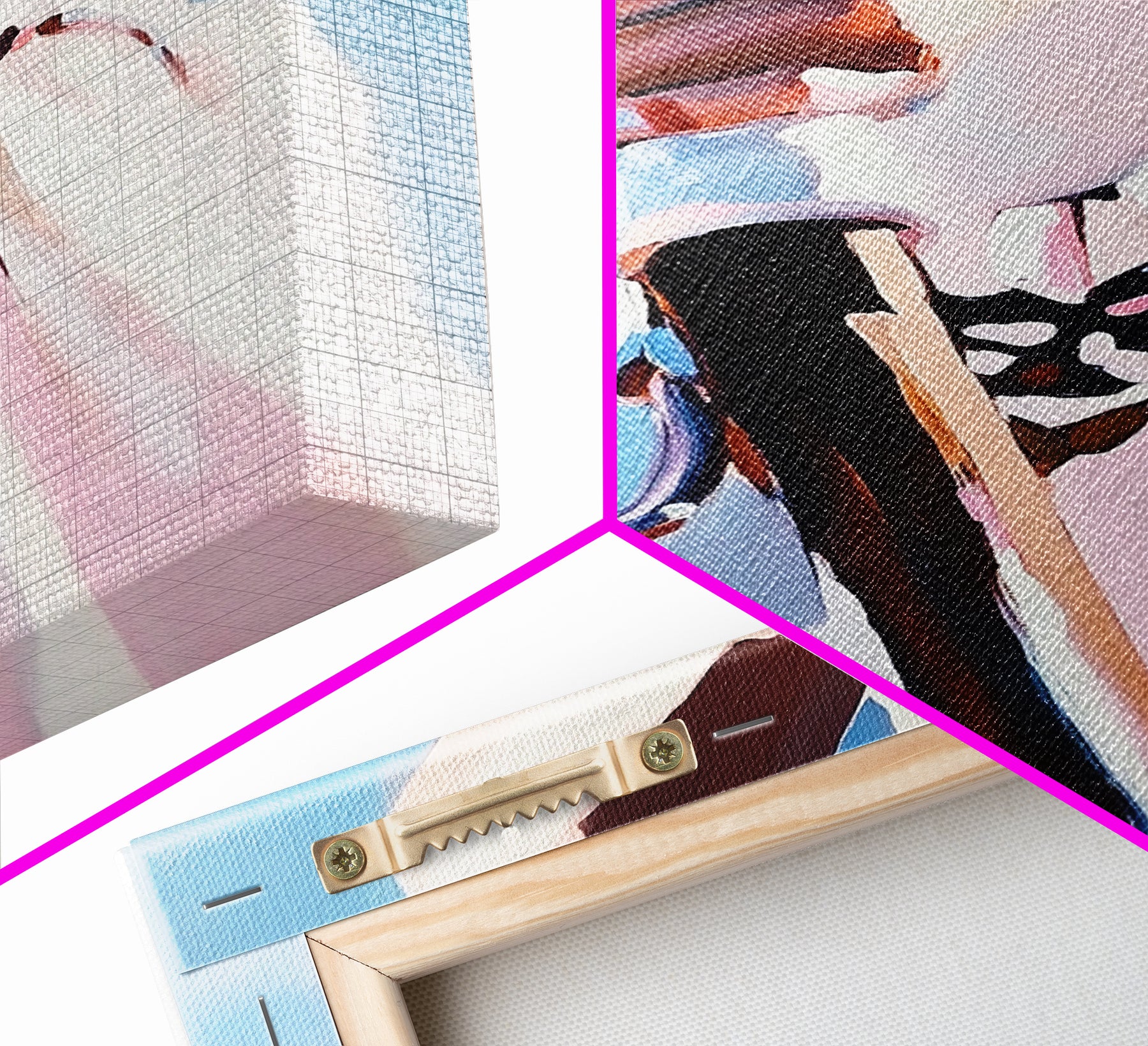 Hello and thank you for taking the time to view our modern high quality giclée artwork! We offer both posters and stretched canvas prints. Our posters are printed on Ultra Matte 60 lb / 230 GSM high quality photo paper, with a thickness of 10 mil. Our canvases are printed on museum grade 350 GSM canvas material with ECO friendly archival grade ink, then hand stretched and stapled over premium, FSC certified and shrink resistant frames. Designed and built to last a lifetime.