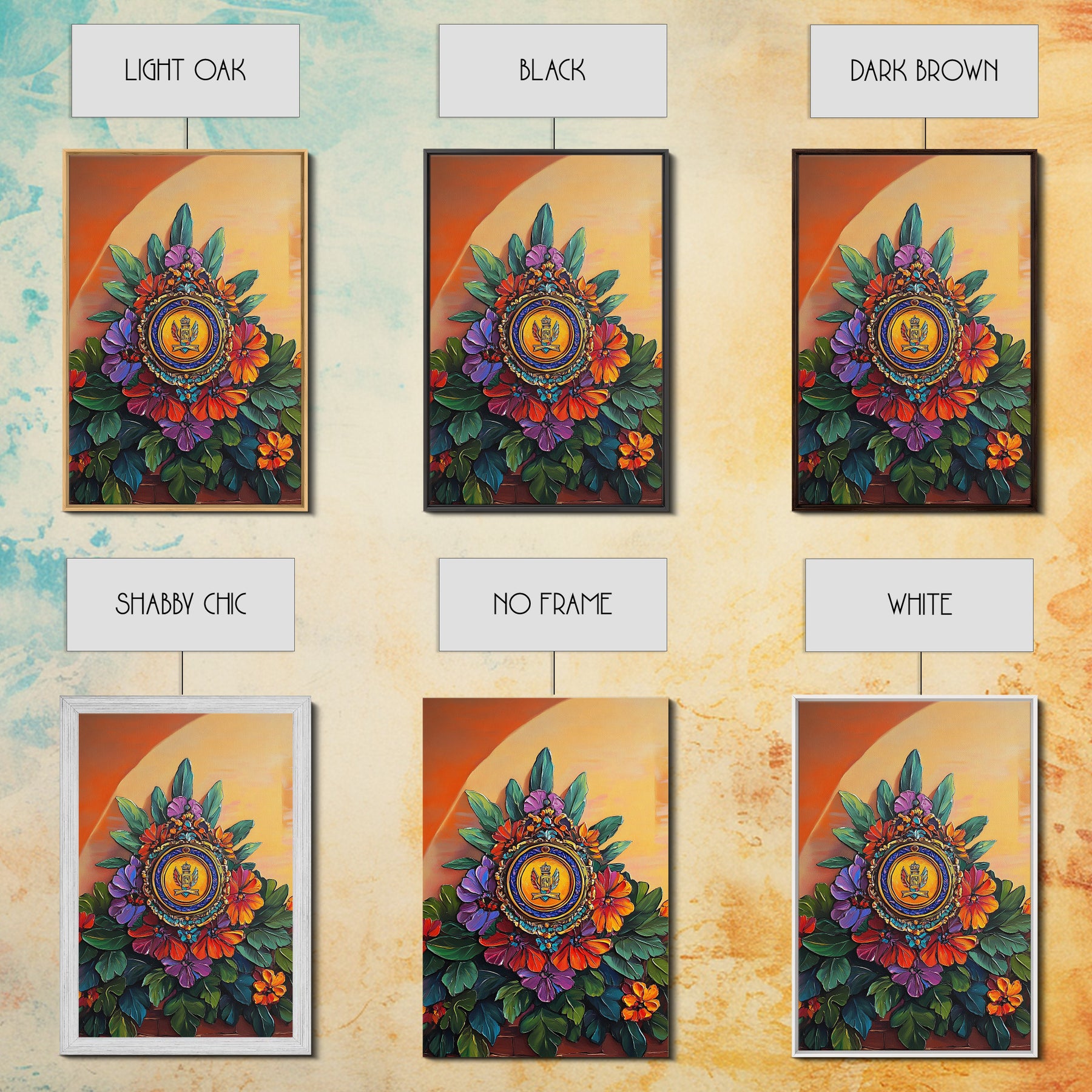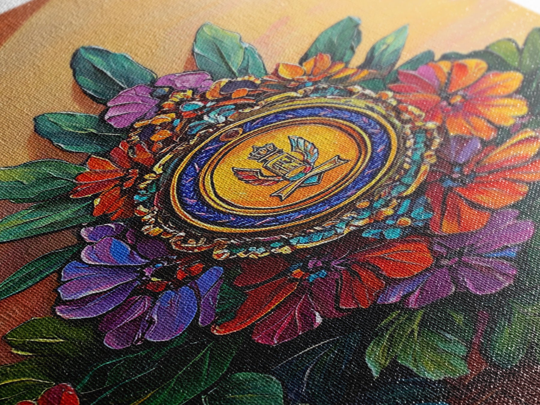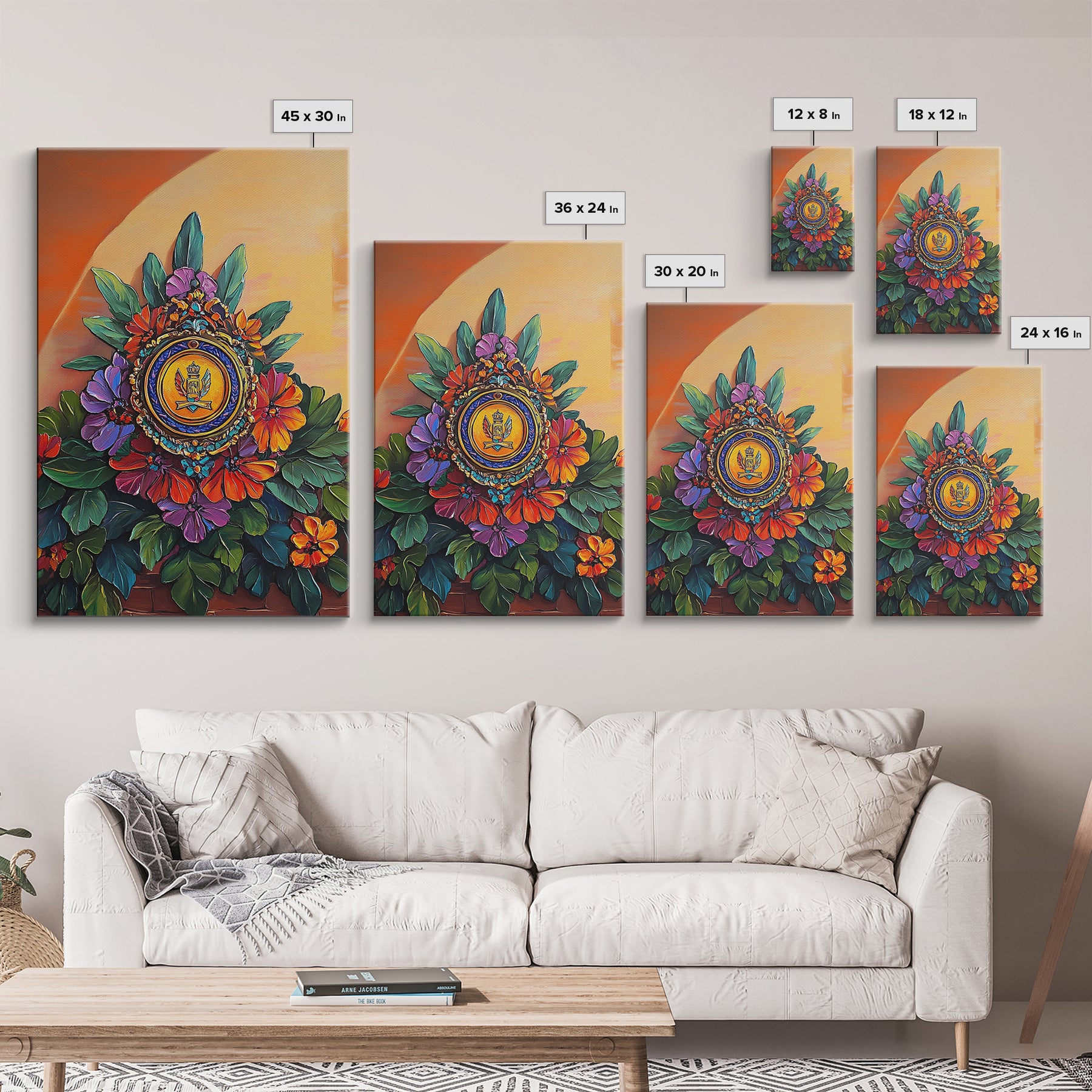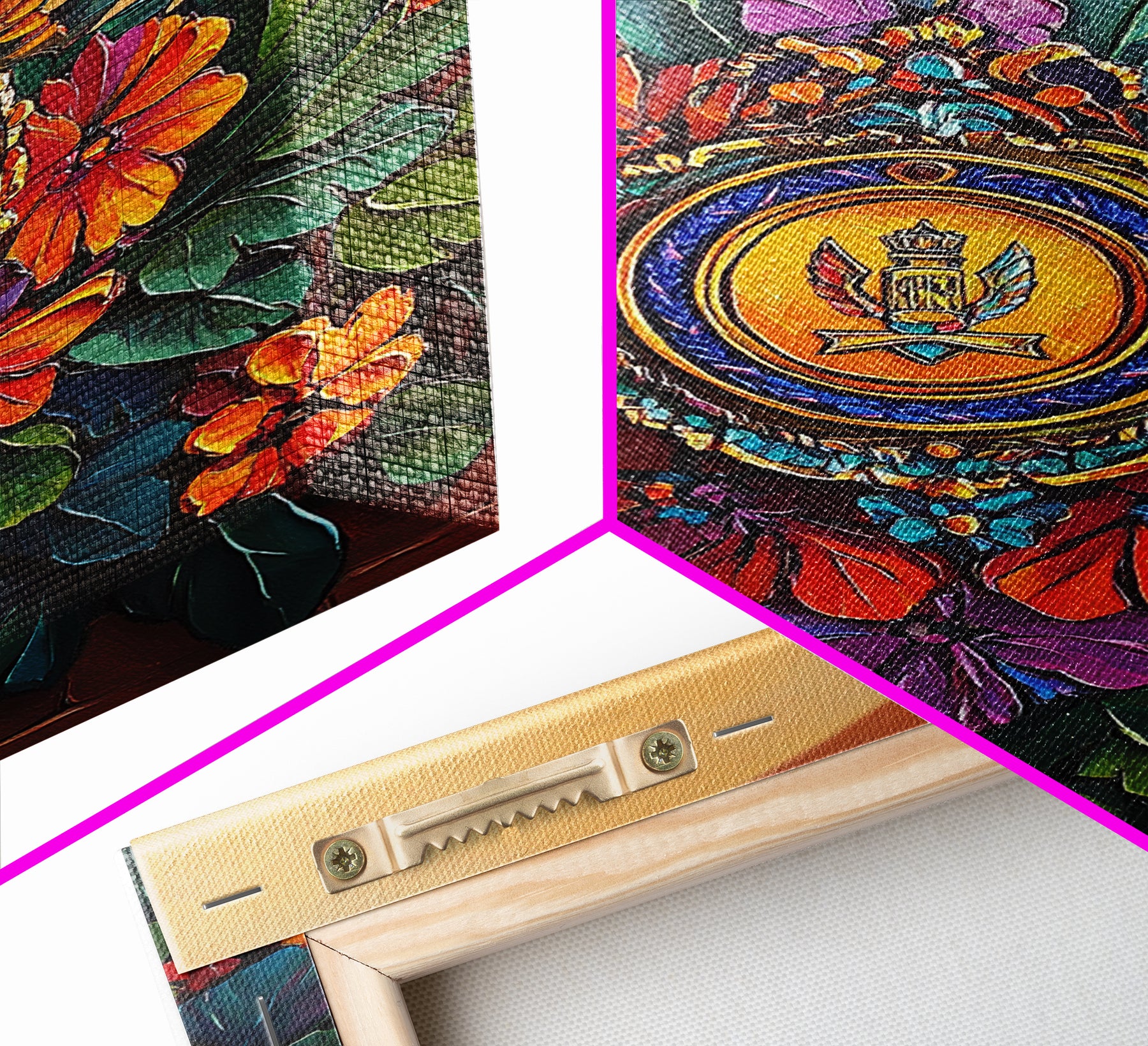 Royal Crest, Floral Emblem, Mediterranean Decor, Vibrant Details, Framed Canvas Print, Kitchen Wall Art, Spanish Wall Art, Regal Vibe