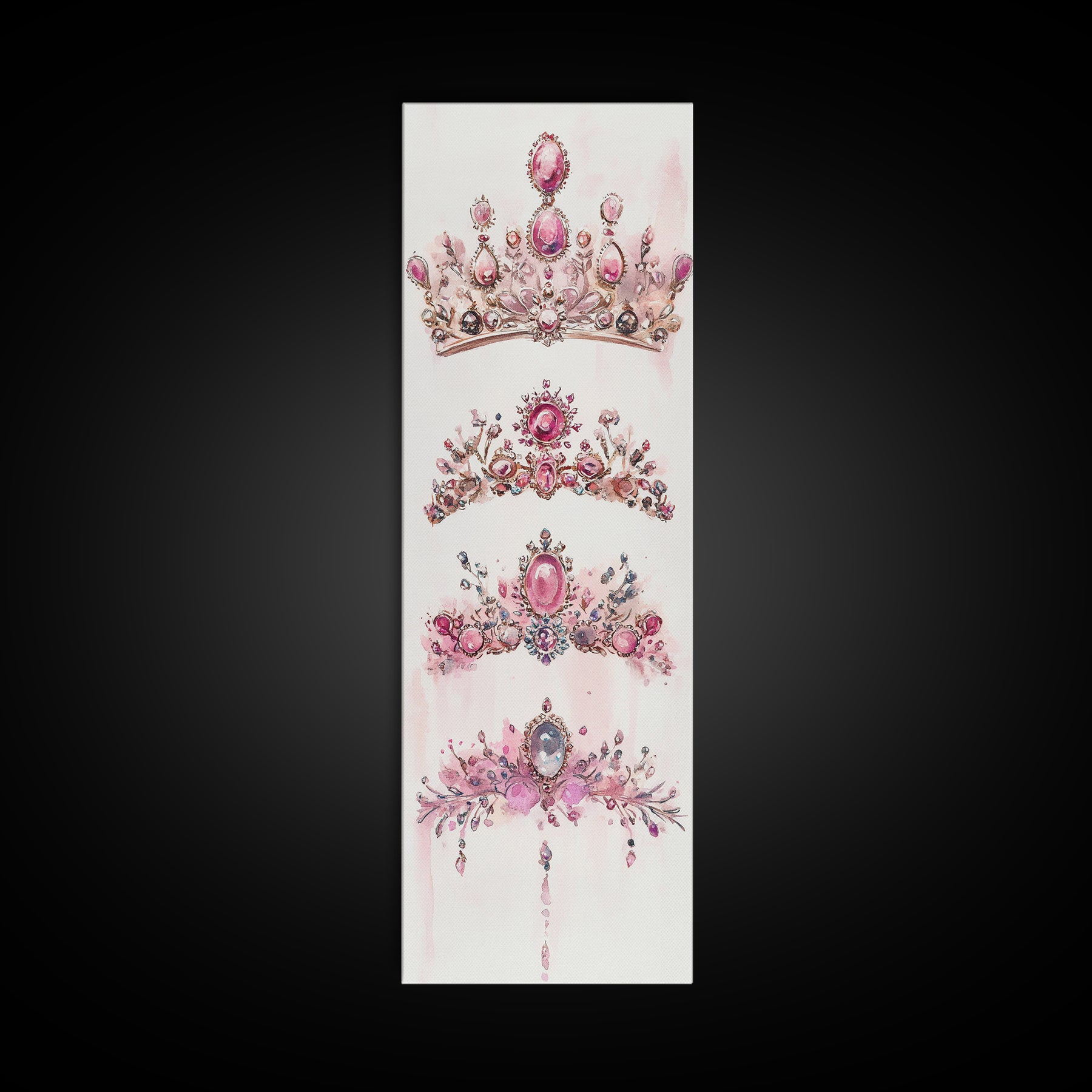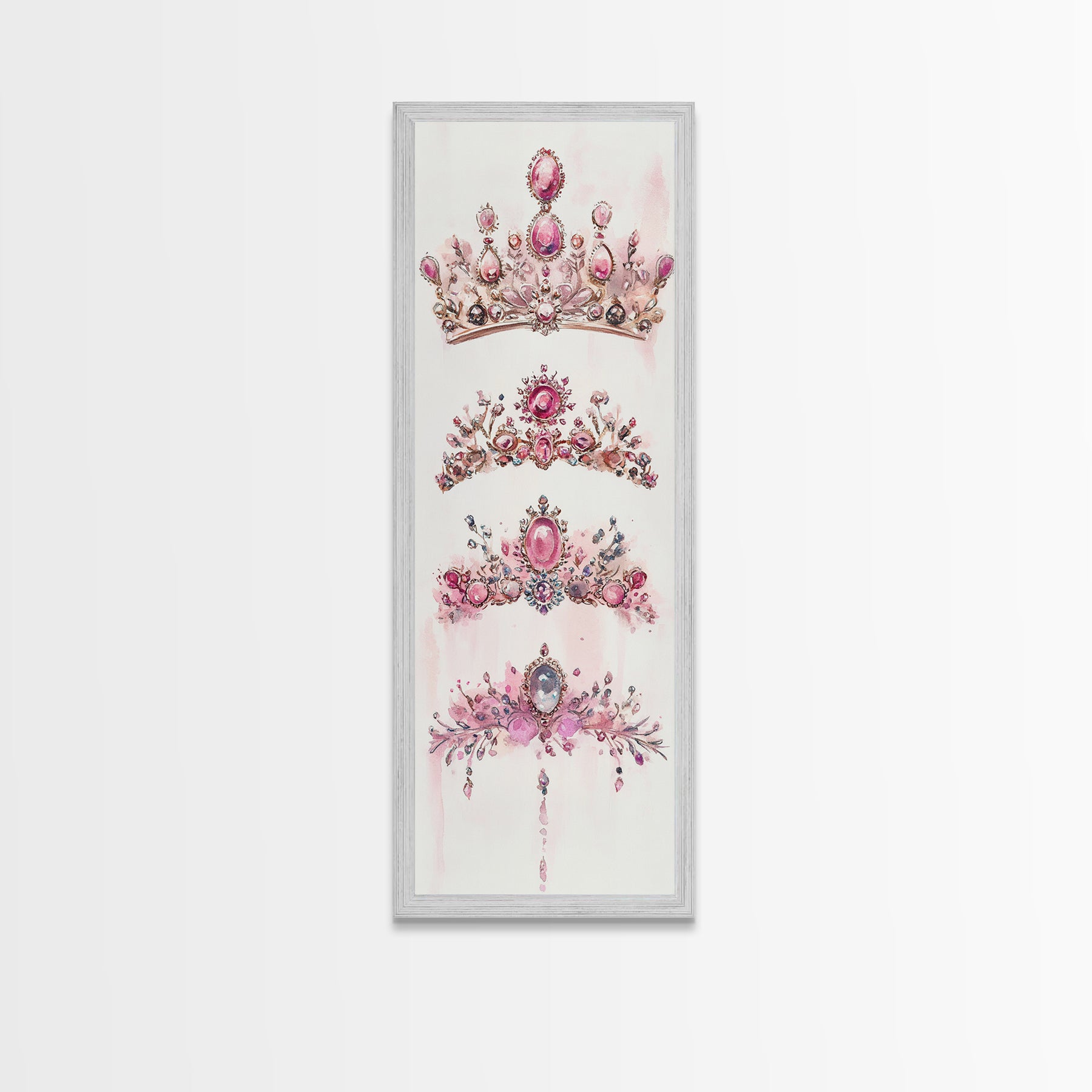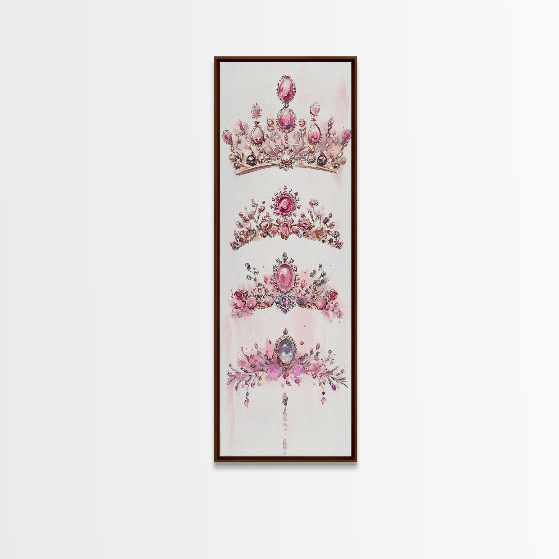 Royal Pink Tiara Framed Canvas Print Princess Gemstone Painting Feminine Wabi Sabi Art Vertical Wall Art Elegant Home Decor