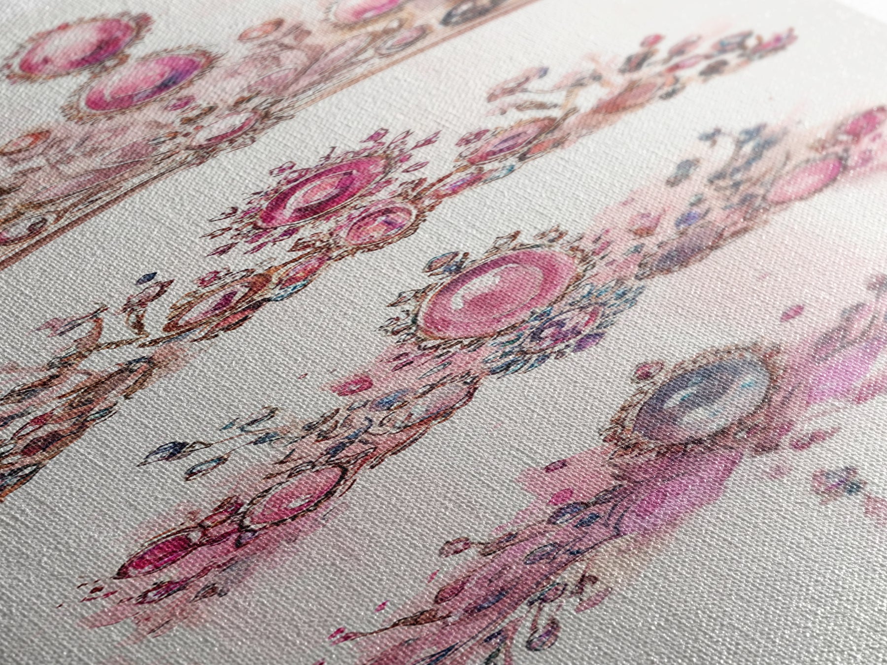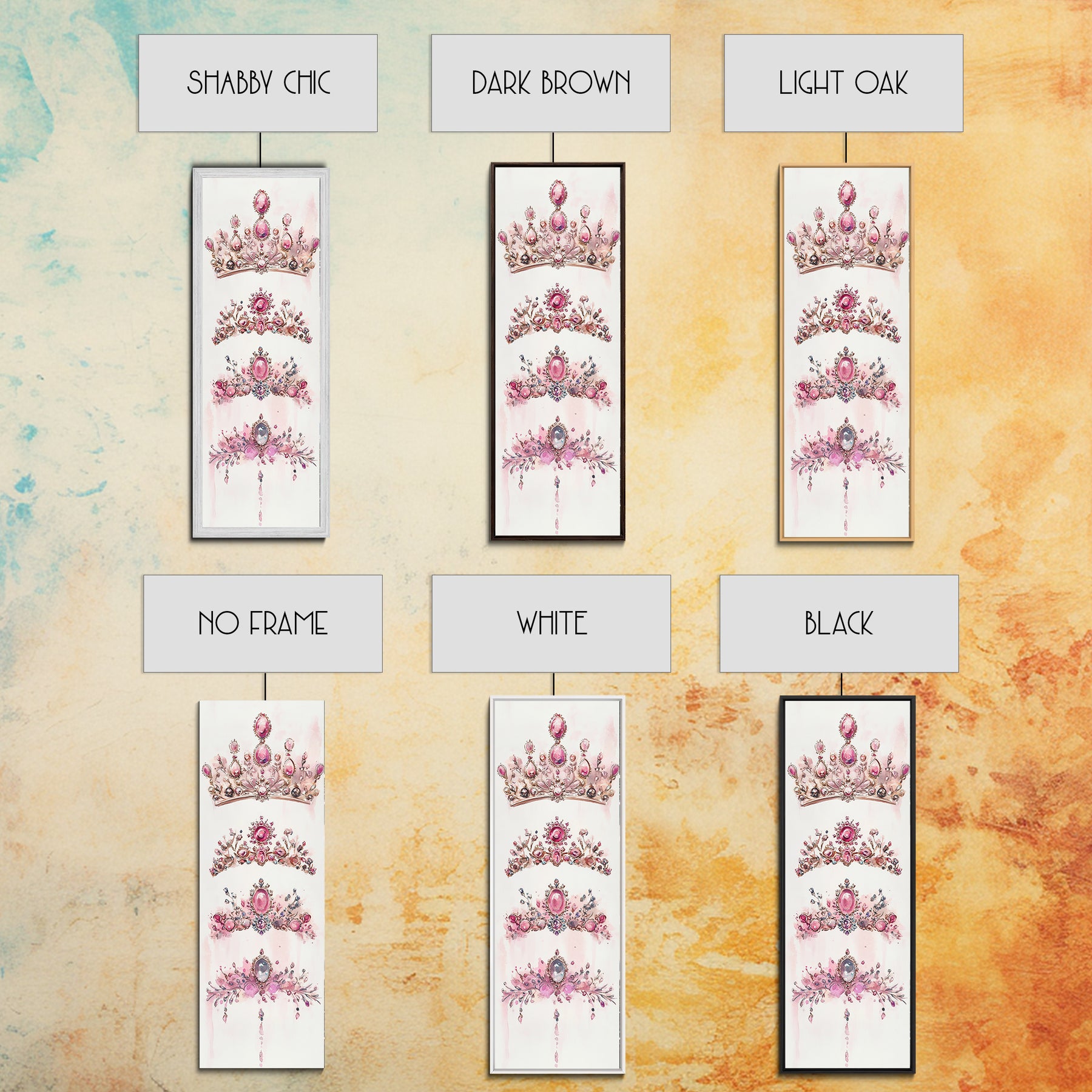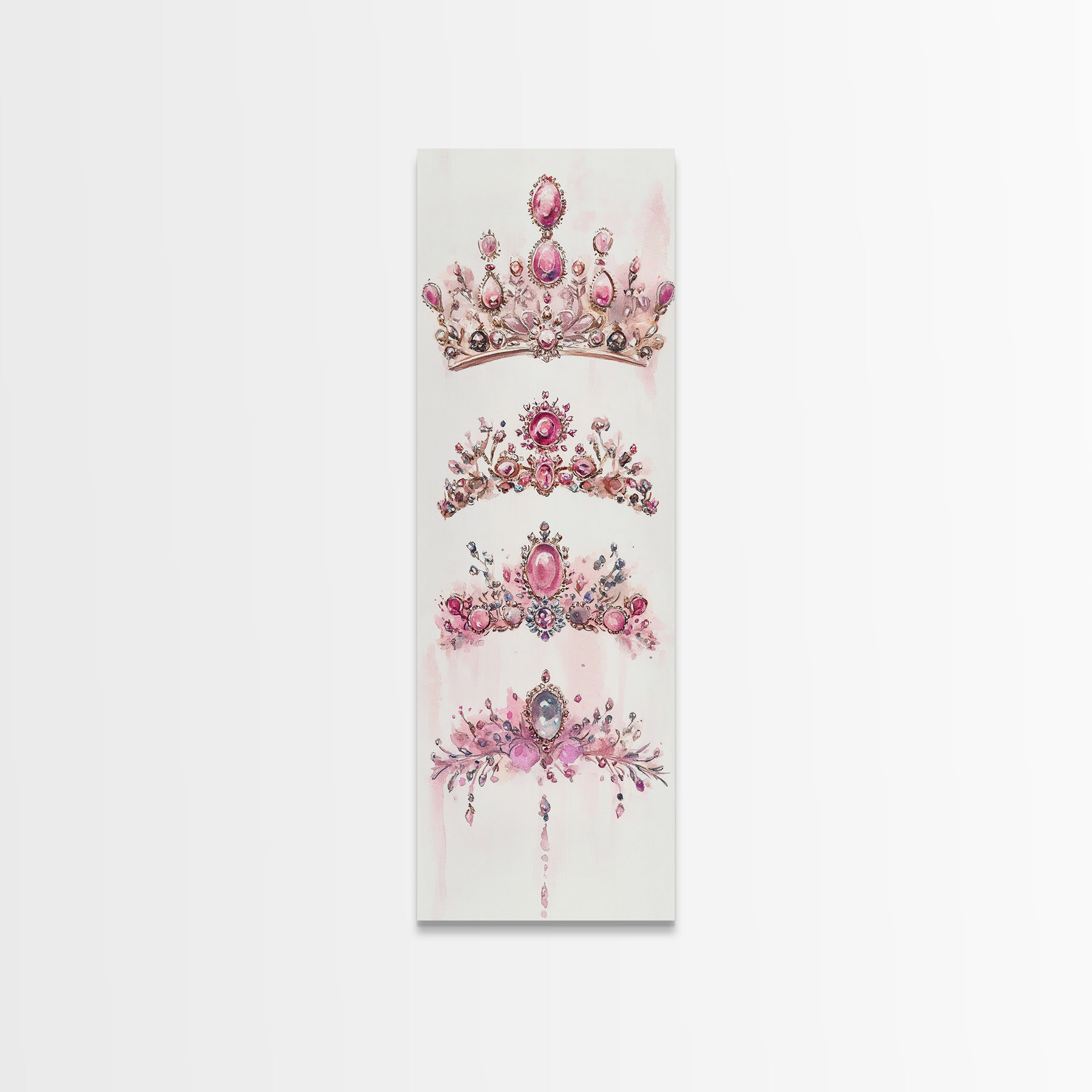 Royal Pink Tiara Framed Canvas Print Princess Gemstone Painting Feminine Wabi Sabi Art Vertical Wall Art Elegant Home Decor