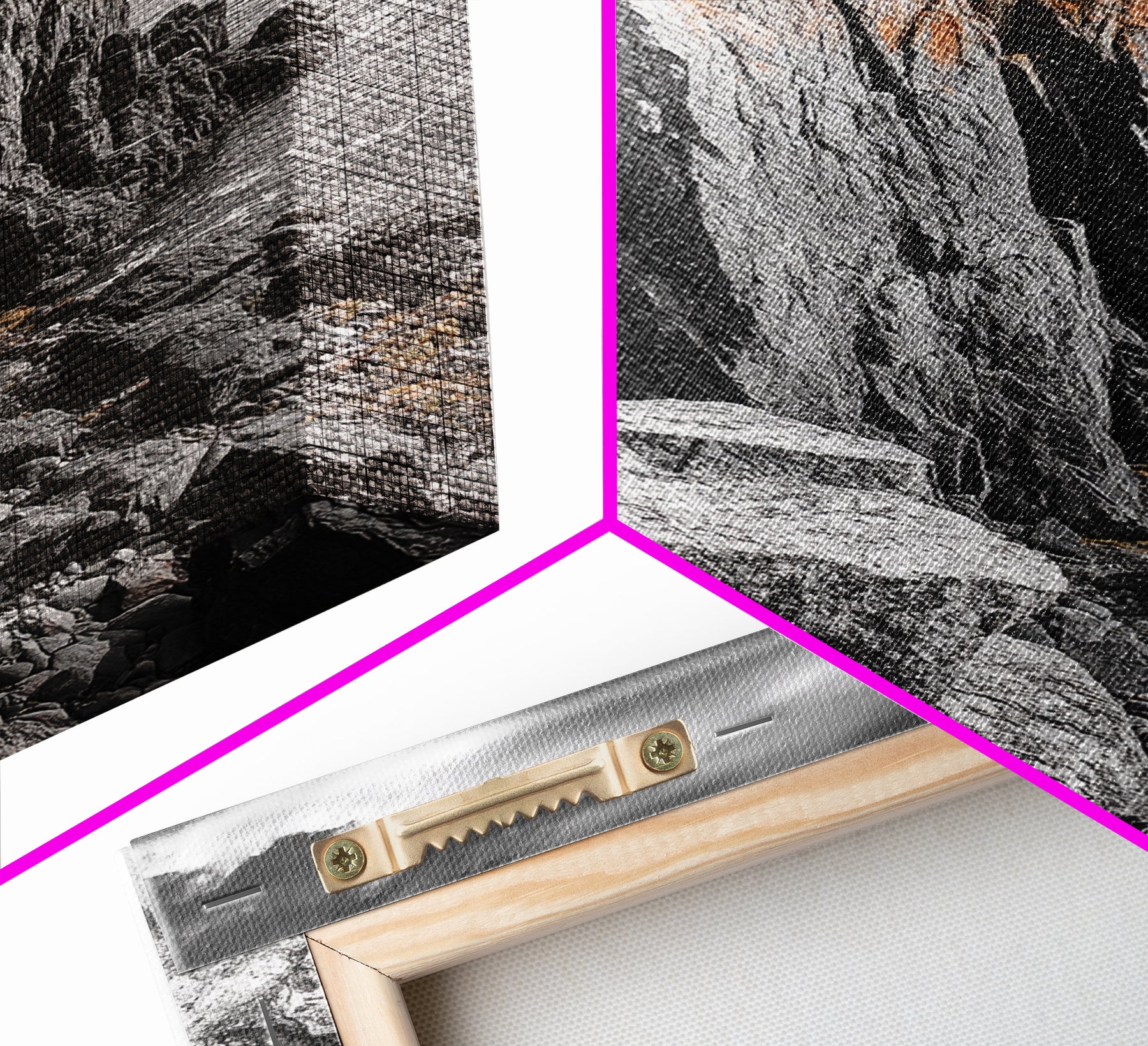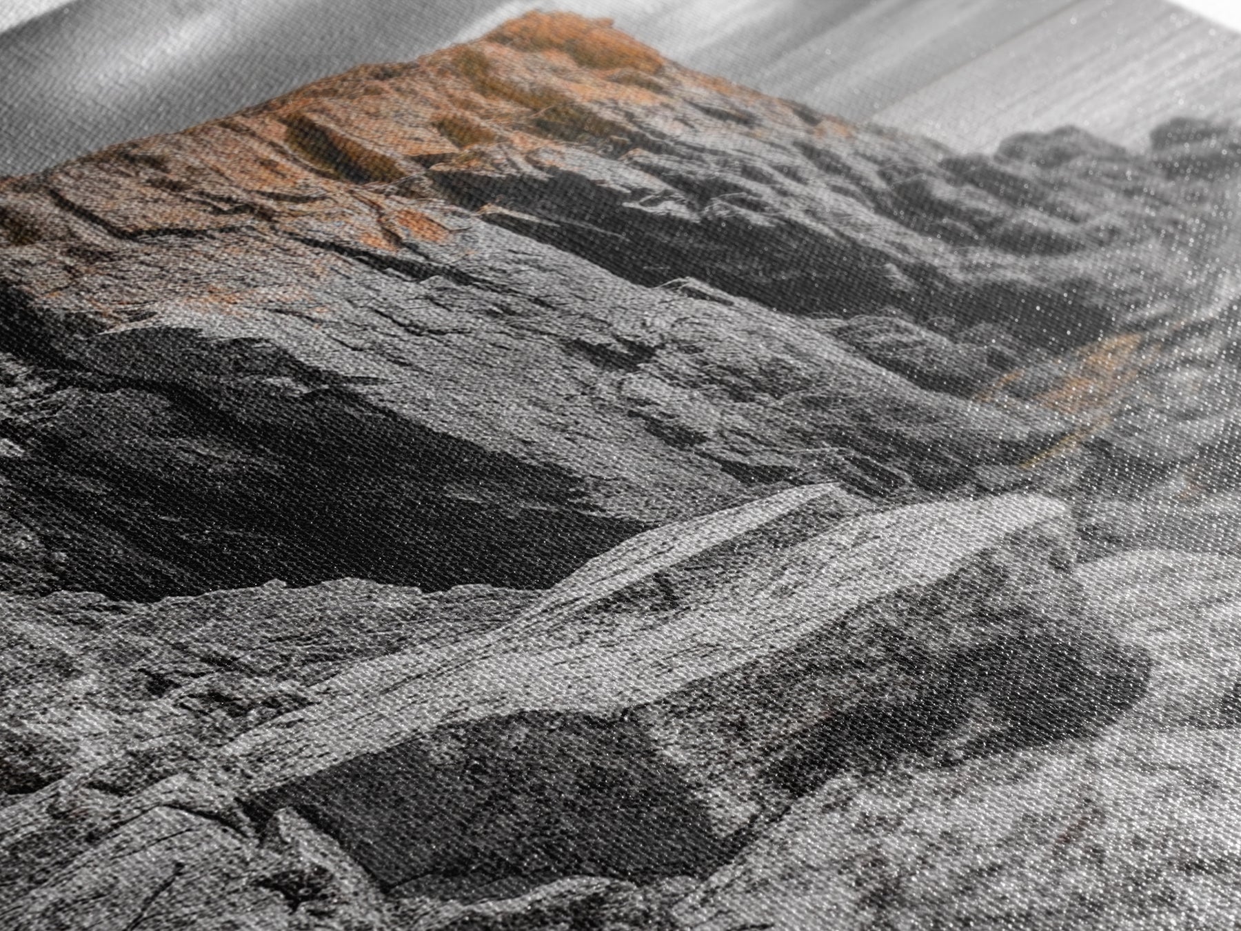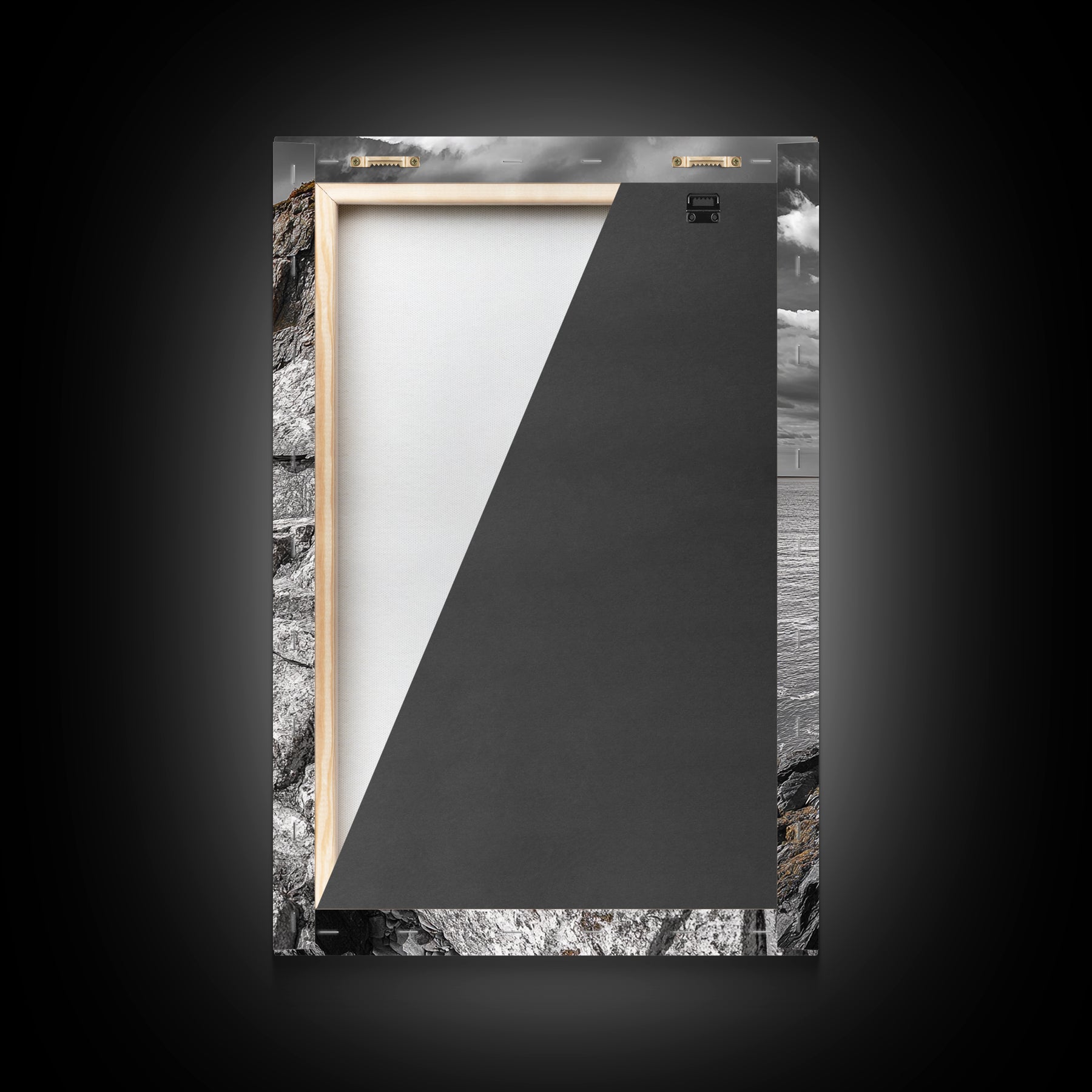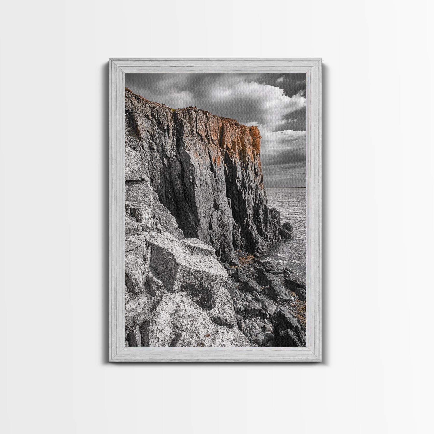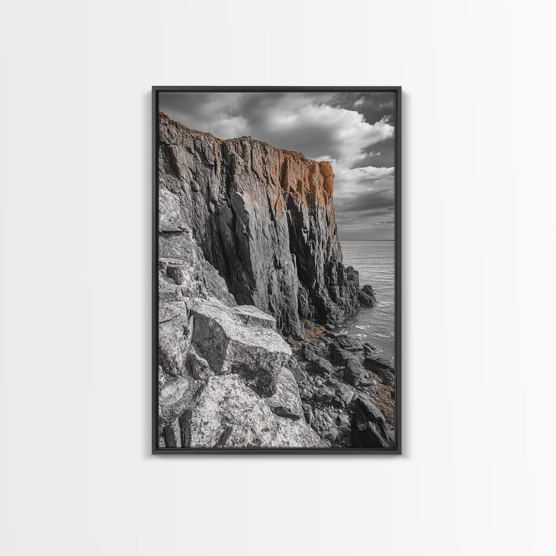 Rugged Cliff Coast, Ocean Rocks, Dramatic Sky, Seaside View, Framed Canvas Print, Coastal Decor, Living Room Wall Art, Earthy Tones