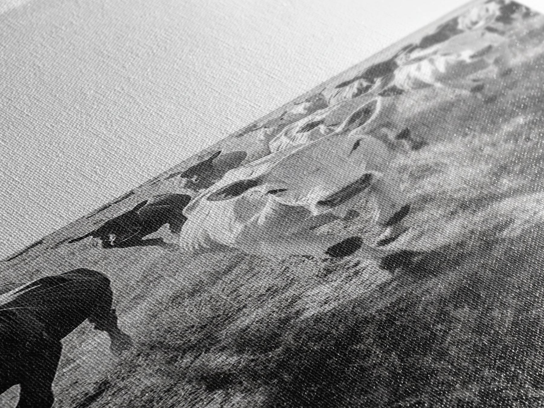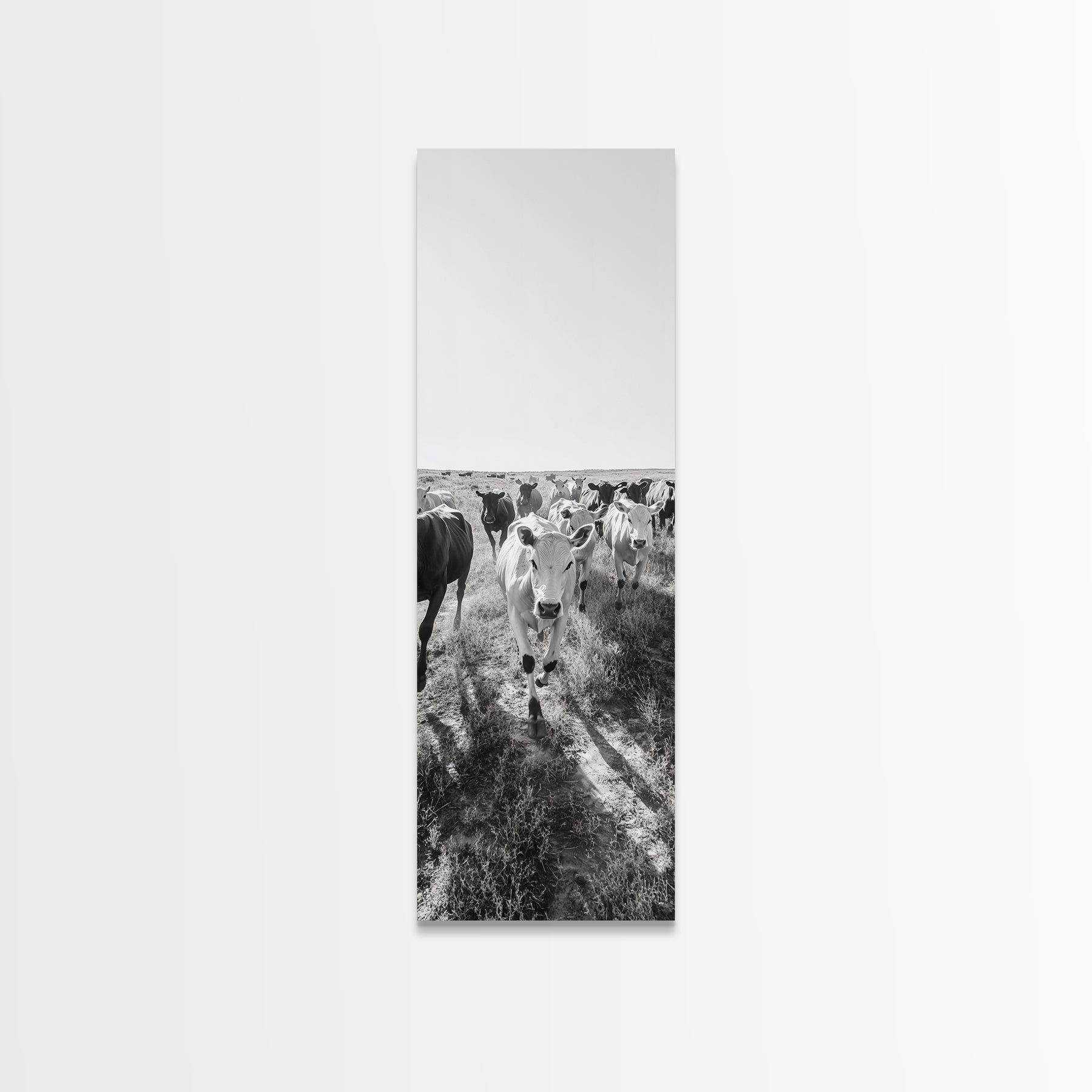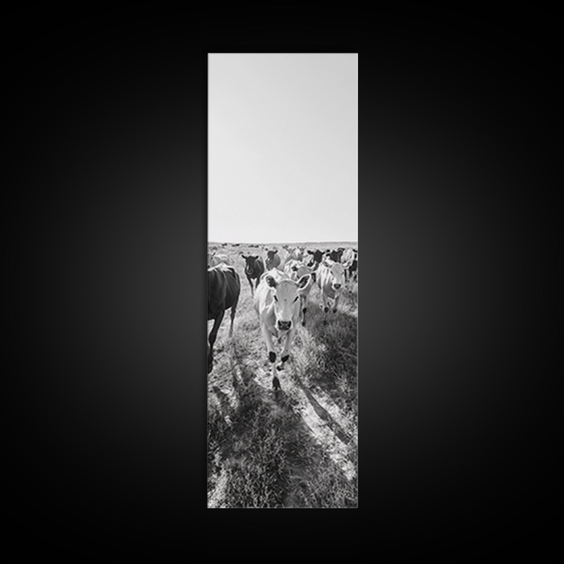 Running Cattle, Framed Canvas Print, rustic western wall art, cowboy décor, farmhouse art, above sofa art, panoramic painting, country home decor