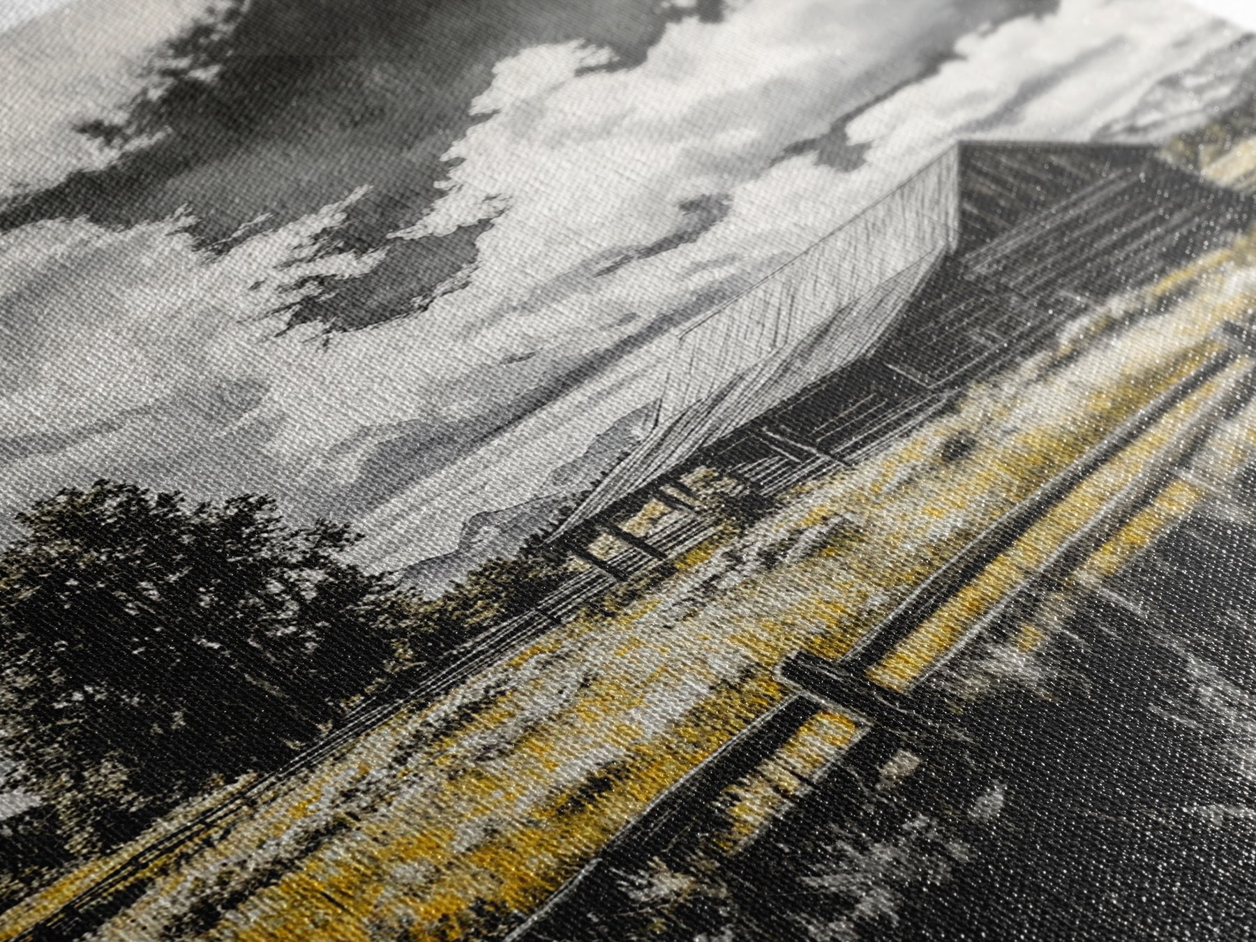Most of our canvases are made in the USA, with the exception of canvases ordered with the light oak unstained frames, and any large canvases (24x48, 30x60, 16x48 and 20x60) ordered WITH a frame. These are temporarily made in and shipped from Europe, while we try to find a more consistent supplier in the USA.