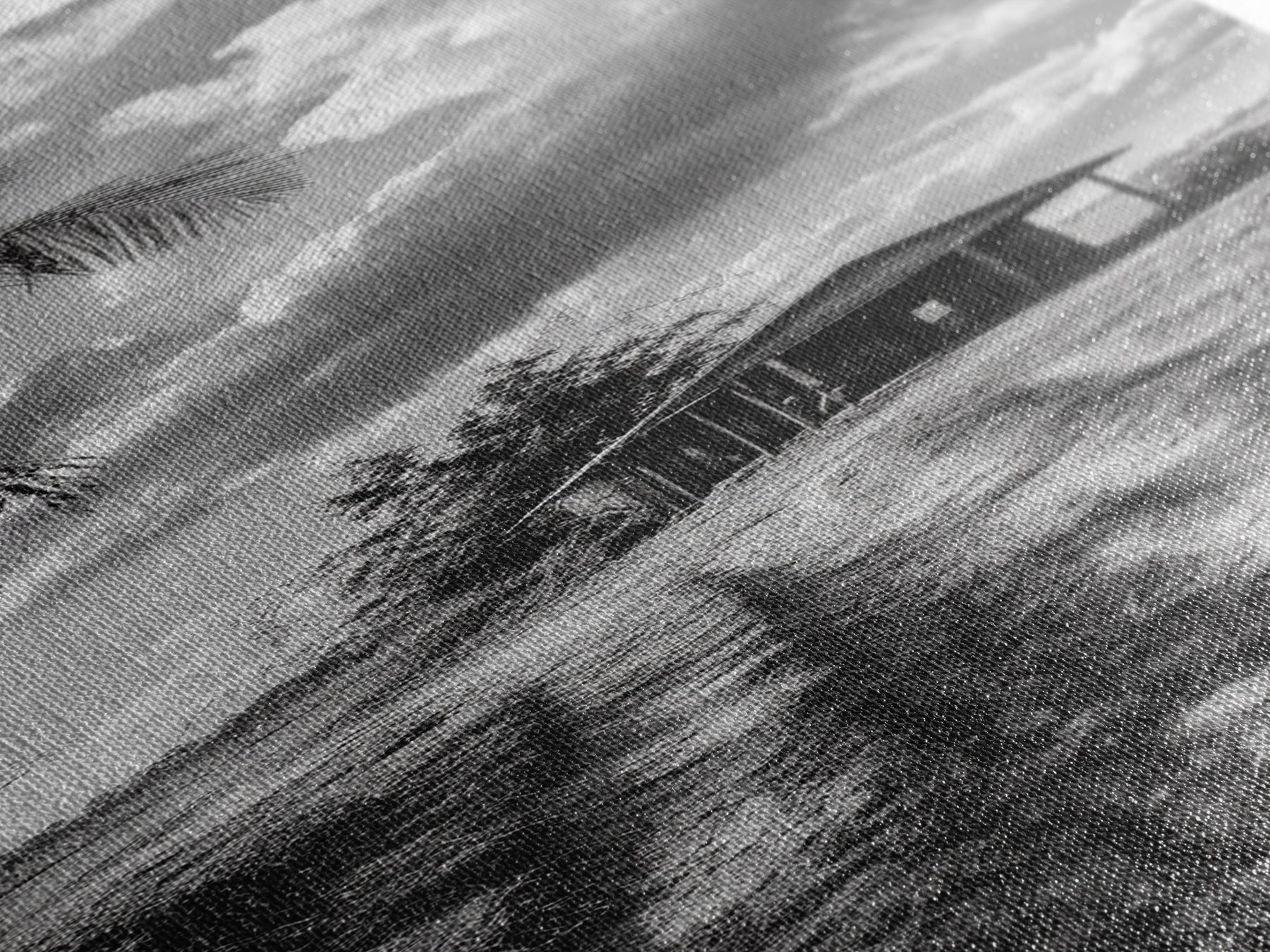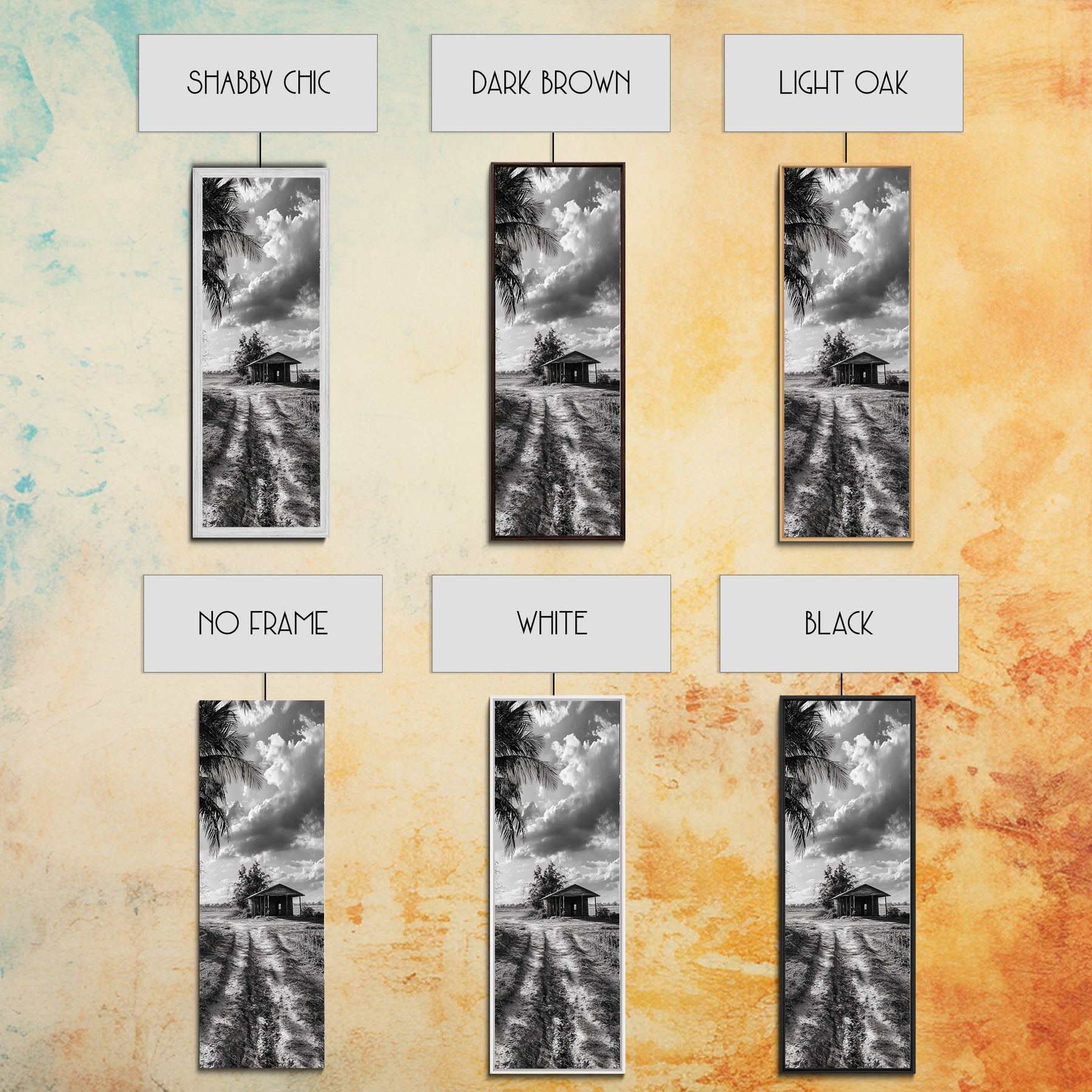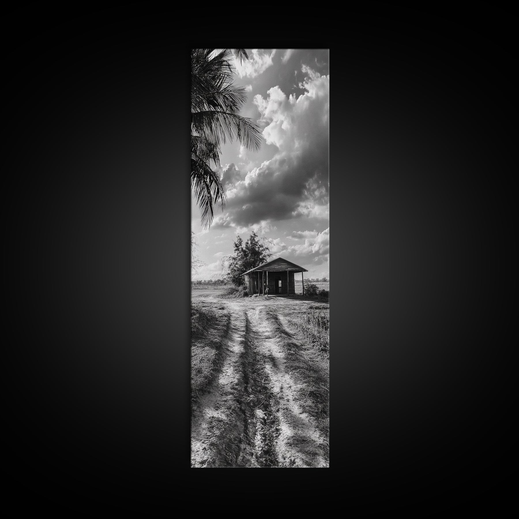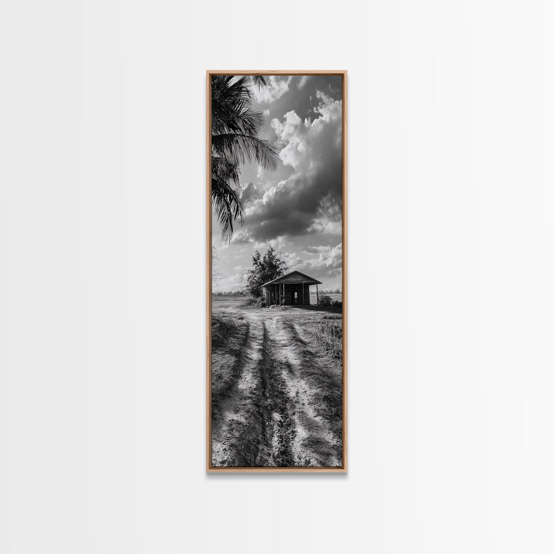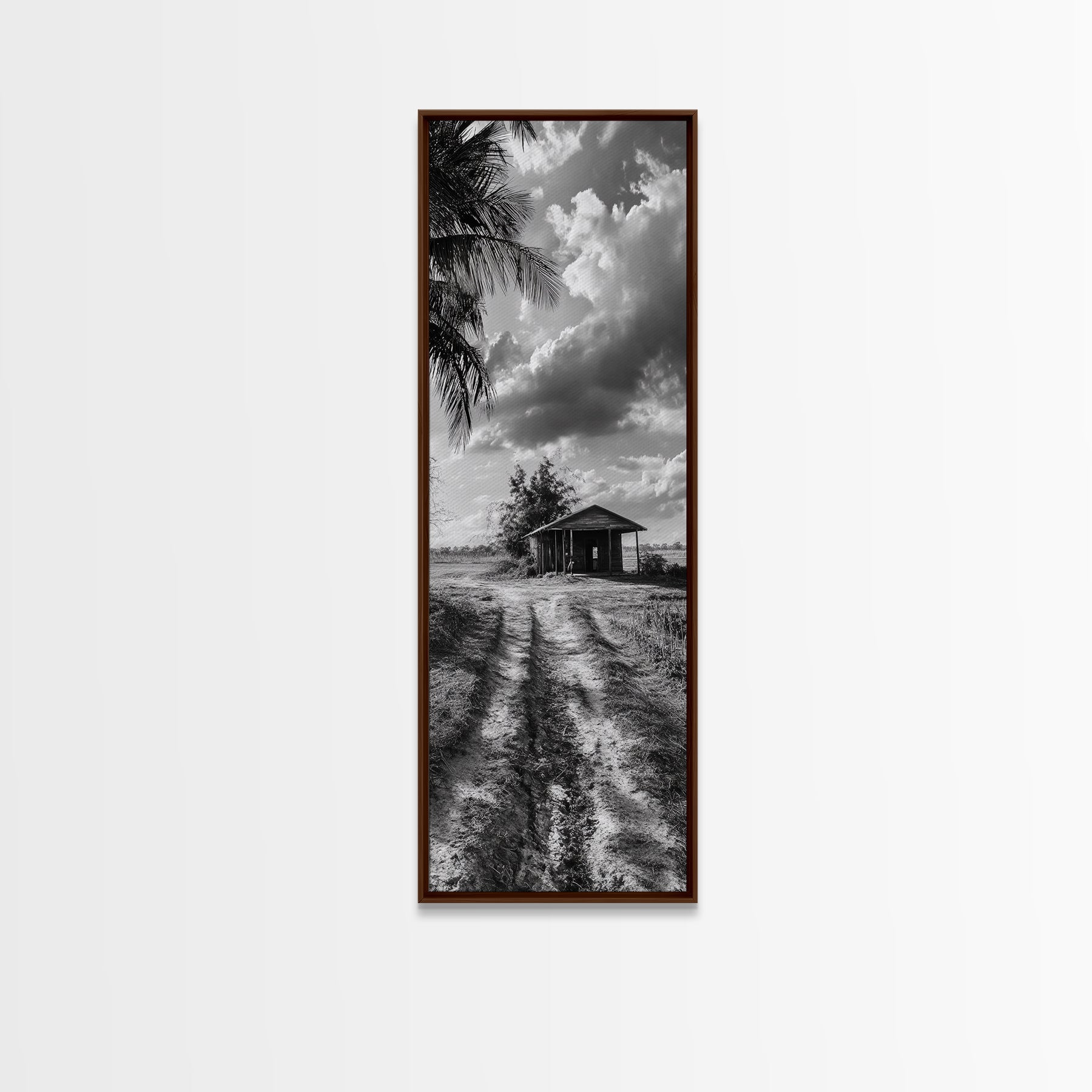 Rustic Cabin, Countryside Road, Farm Field, Palm Trees, Framed Canvas Print, Farmhouse Entryway Wall Art, Fall Landscape, Den Wall Art