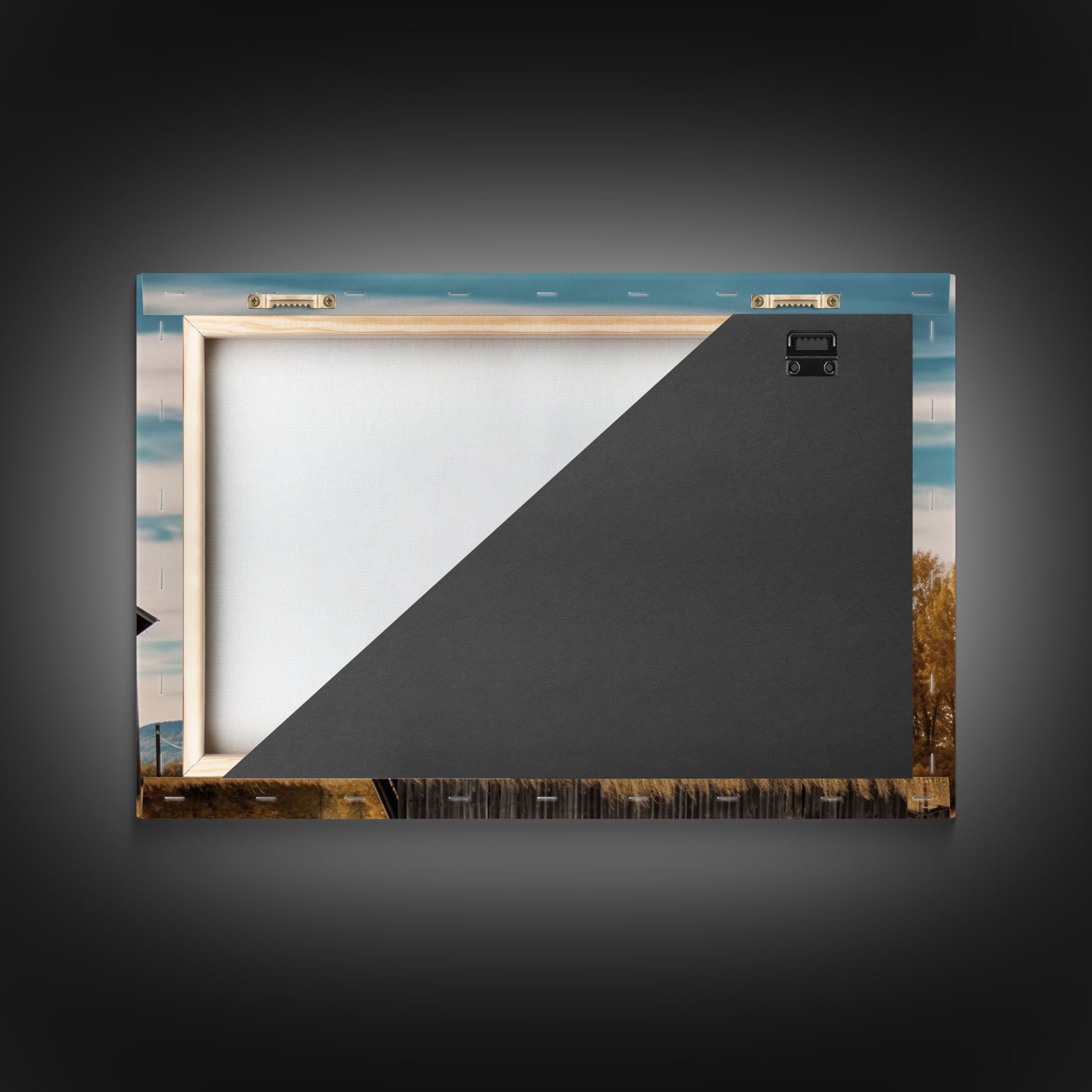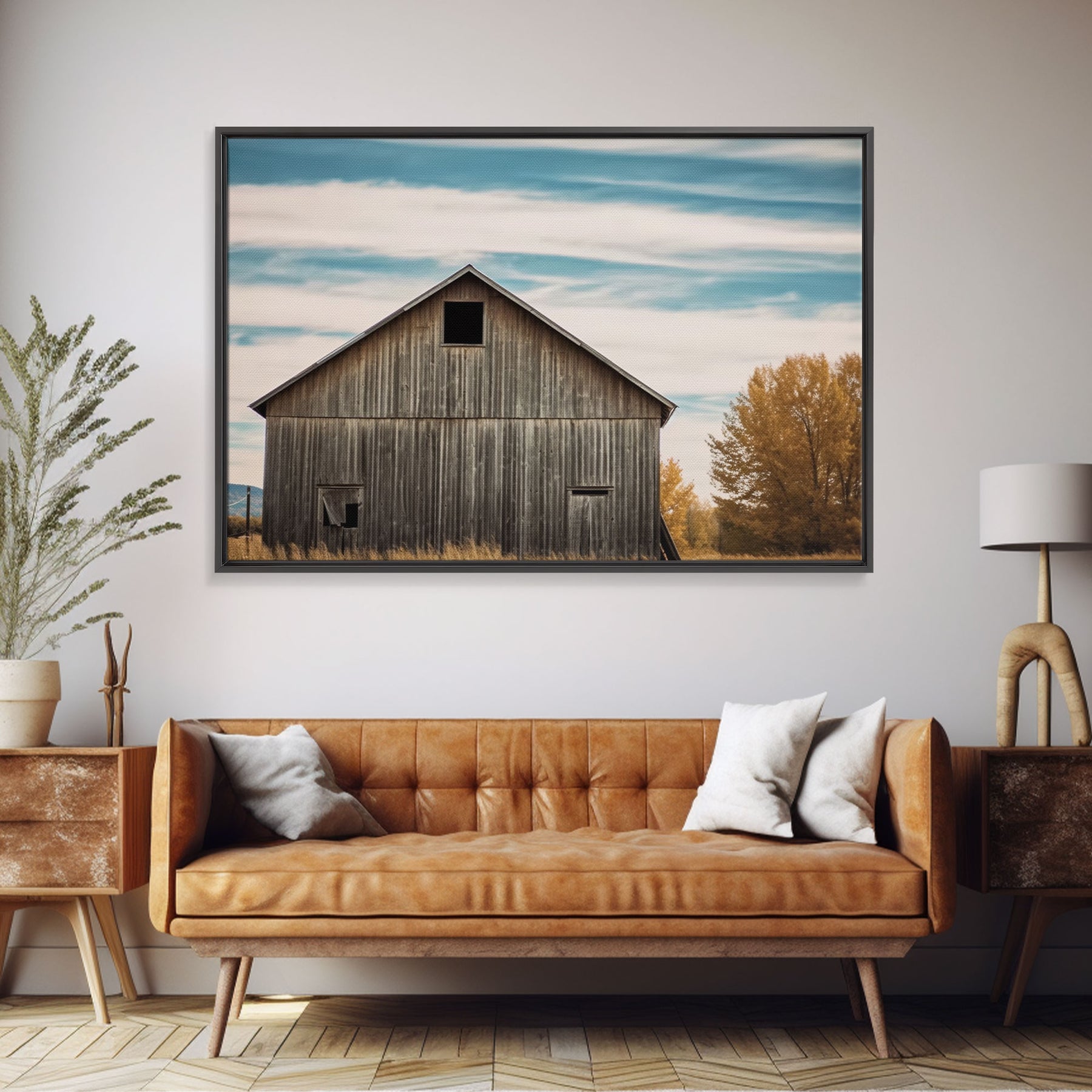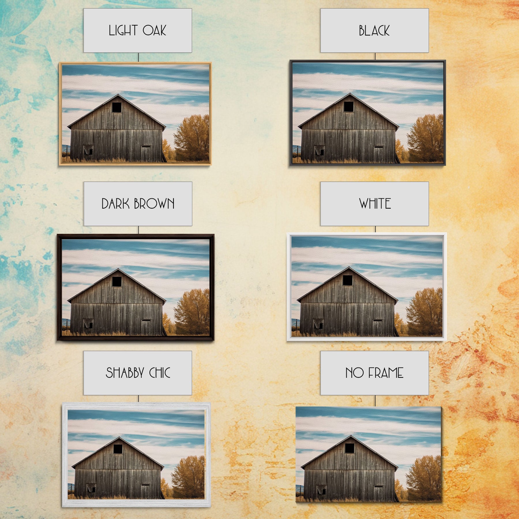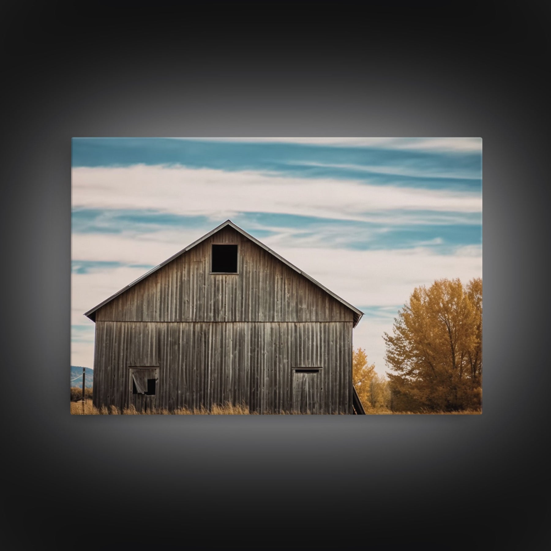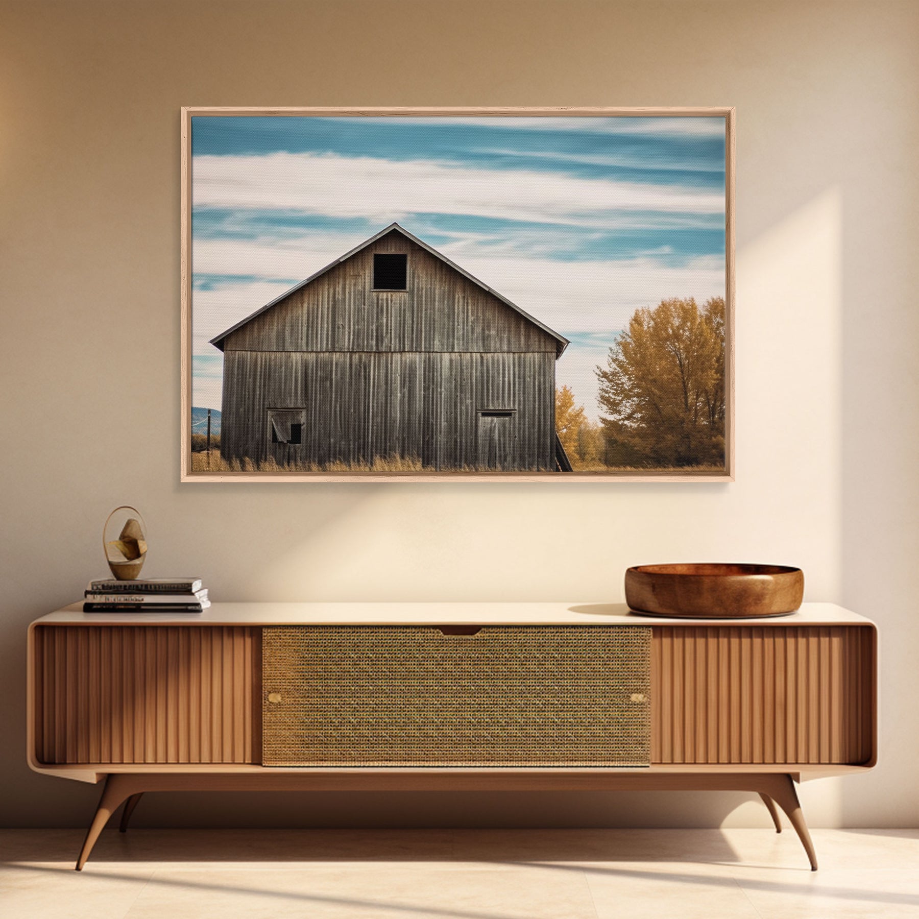 Rustic Farmhouse Wall Decor, Teal Gray Barn Landscape Art Print or Canvas, Country Living Room Wall Decor, Liminal Farmhouse Wall Art Print
