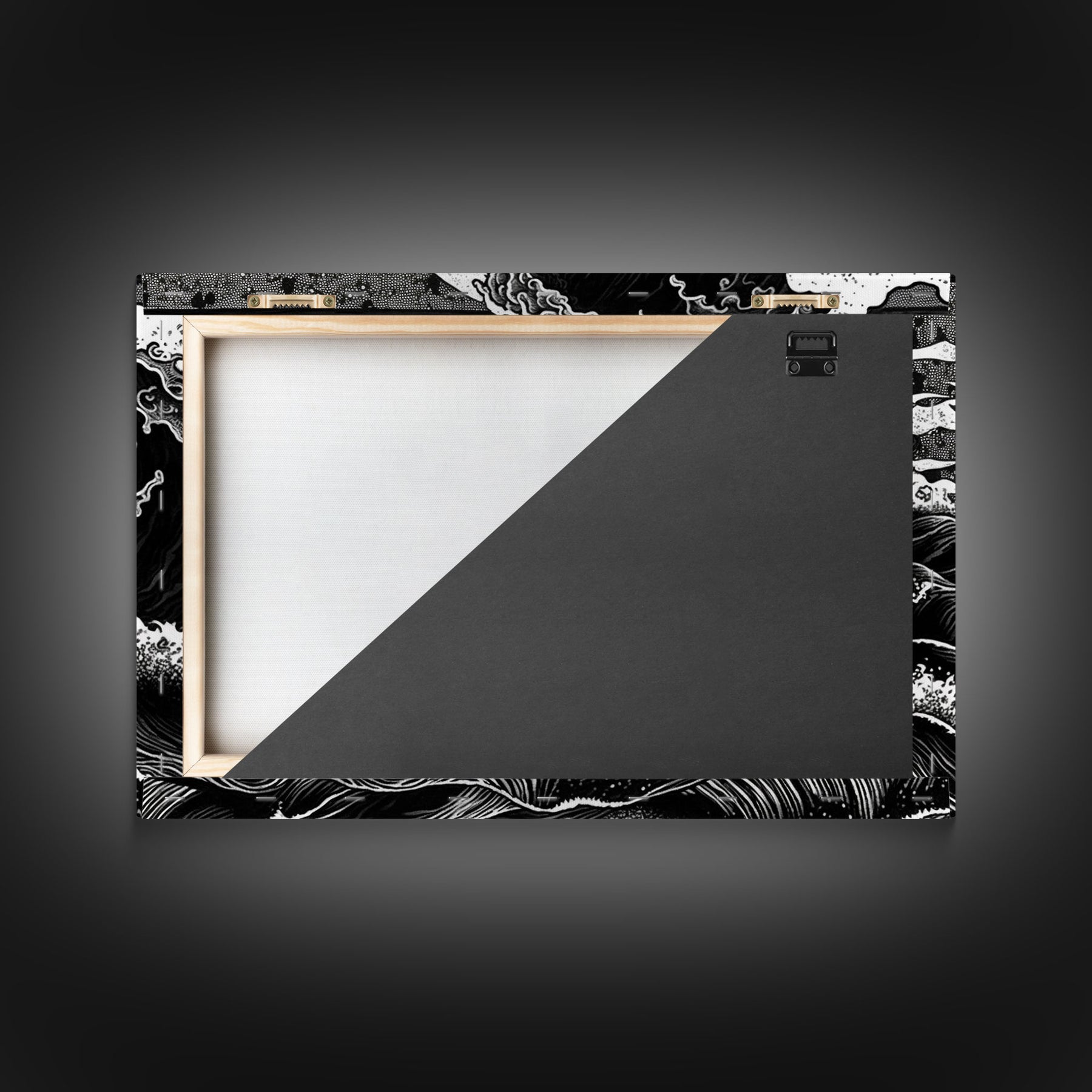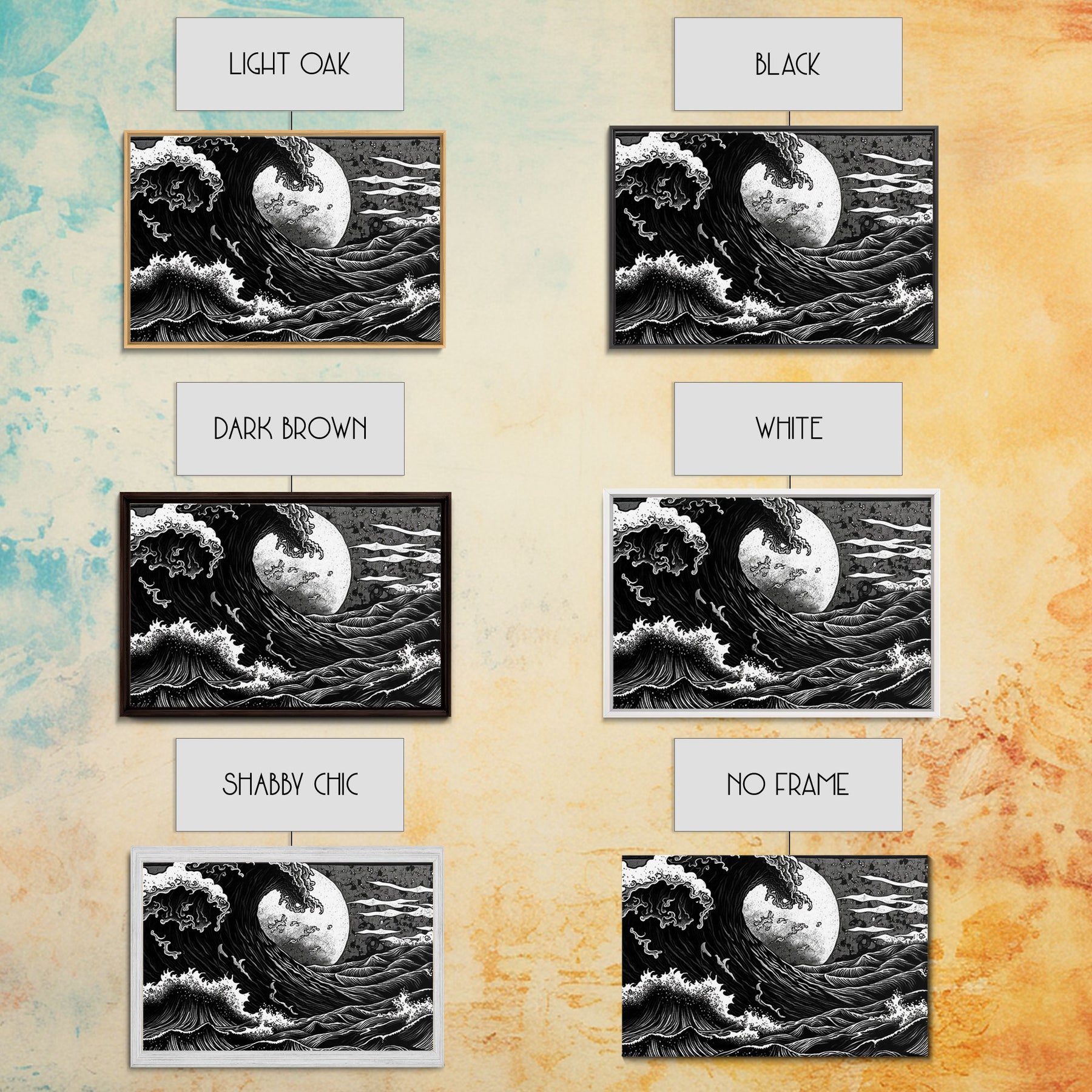 Ocean Wave Wall Art Framed Canvas Print, Unique Wall Art, Hokusai Inspired Japanese Style Wall Art, Oversized Art Ocean Print, Retro Art
