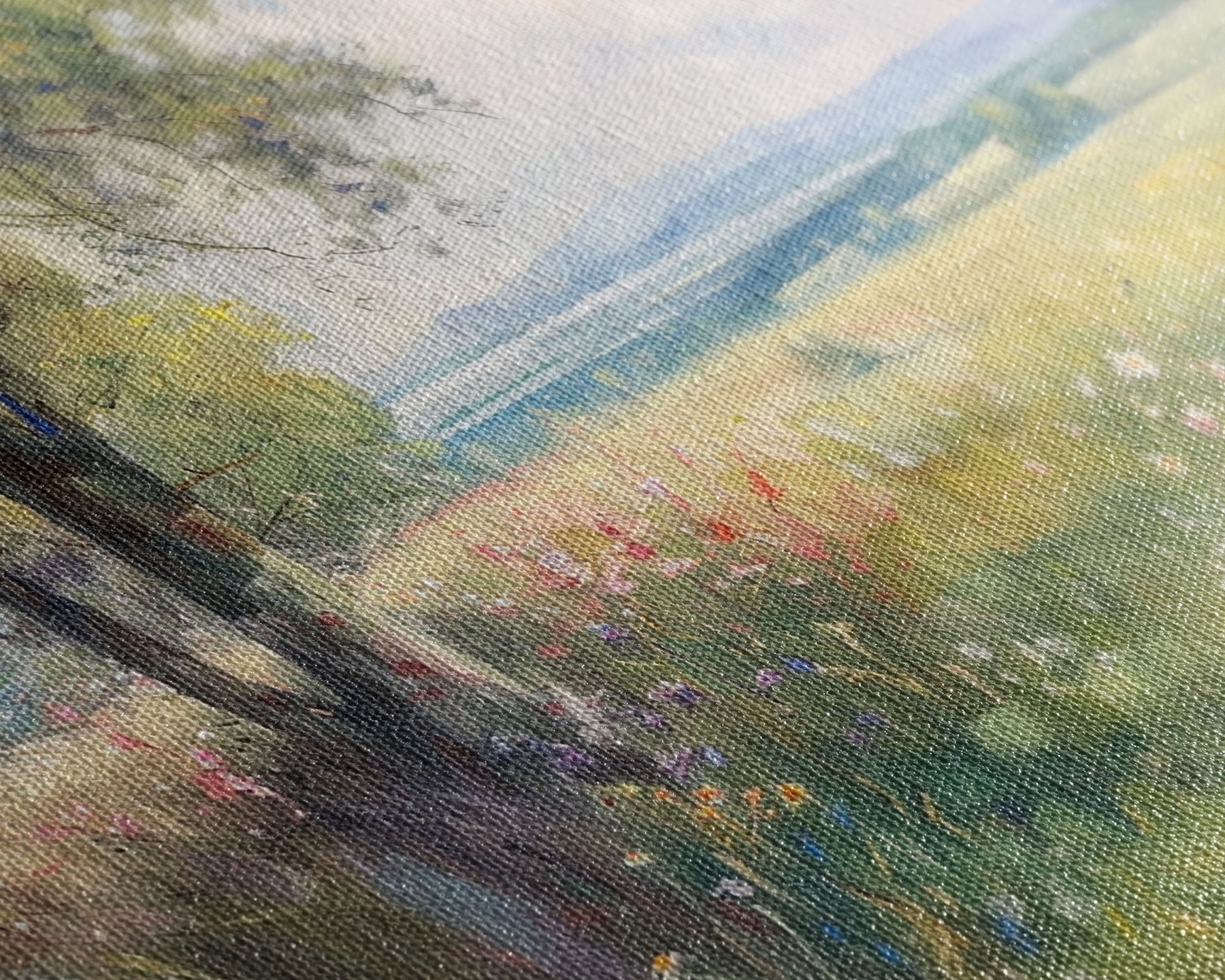 Most of our canvases are made in the USA, with the exception of canvases ordered with the light oak unstained frames, and any large canvases (24x48, 30x60, 16x48 and 20x60) ordered WITH a frame. These are temporarily made in and shipped from Europe, while we try to find a more consistent supplier in the USA.