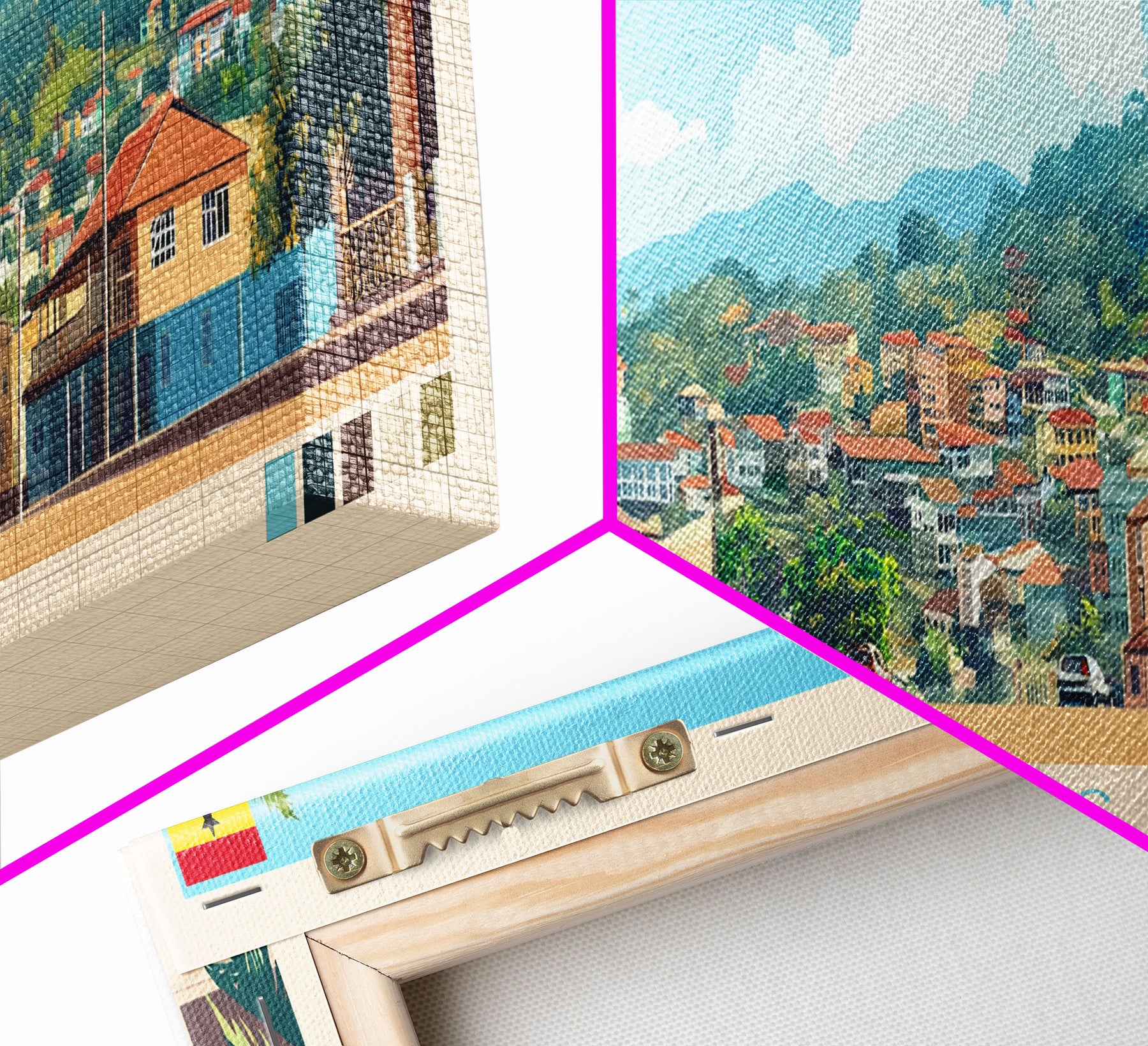 Most of our canvases are made in the USA, with the exception of canvases ordered with the light oak unstained frames, and any large canvases (24x48, 30x60, 16x48 and 20x60) ordered WITH a frame. These are temporarily made in and shipped from Europe, while we try to find a more consistent supplier in the USA.