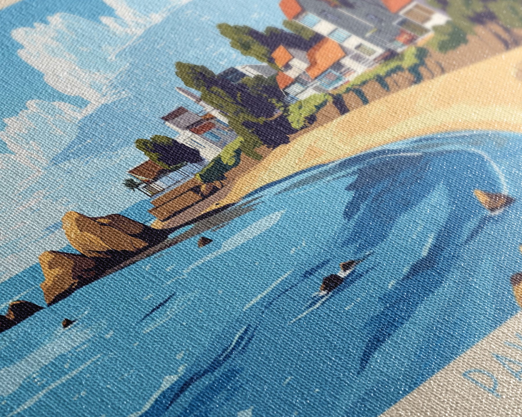 Most of our canvases are made in the USA, with the exception of canvases ordered with the light oak unstained frames, and any large canvases (24x48, 30x60, 16x48 and 20x60) ordered WITH a frame. These are temporarily made in and shipped from Europe, while we try to find a more consistent supplier in the USA.
