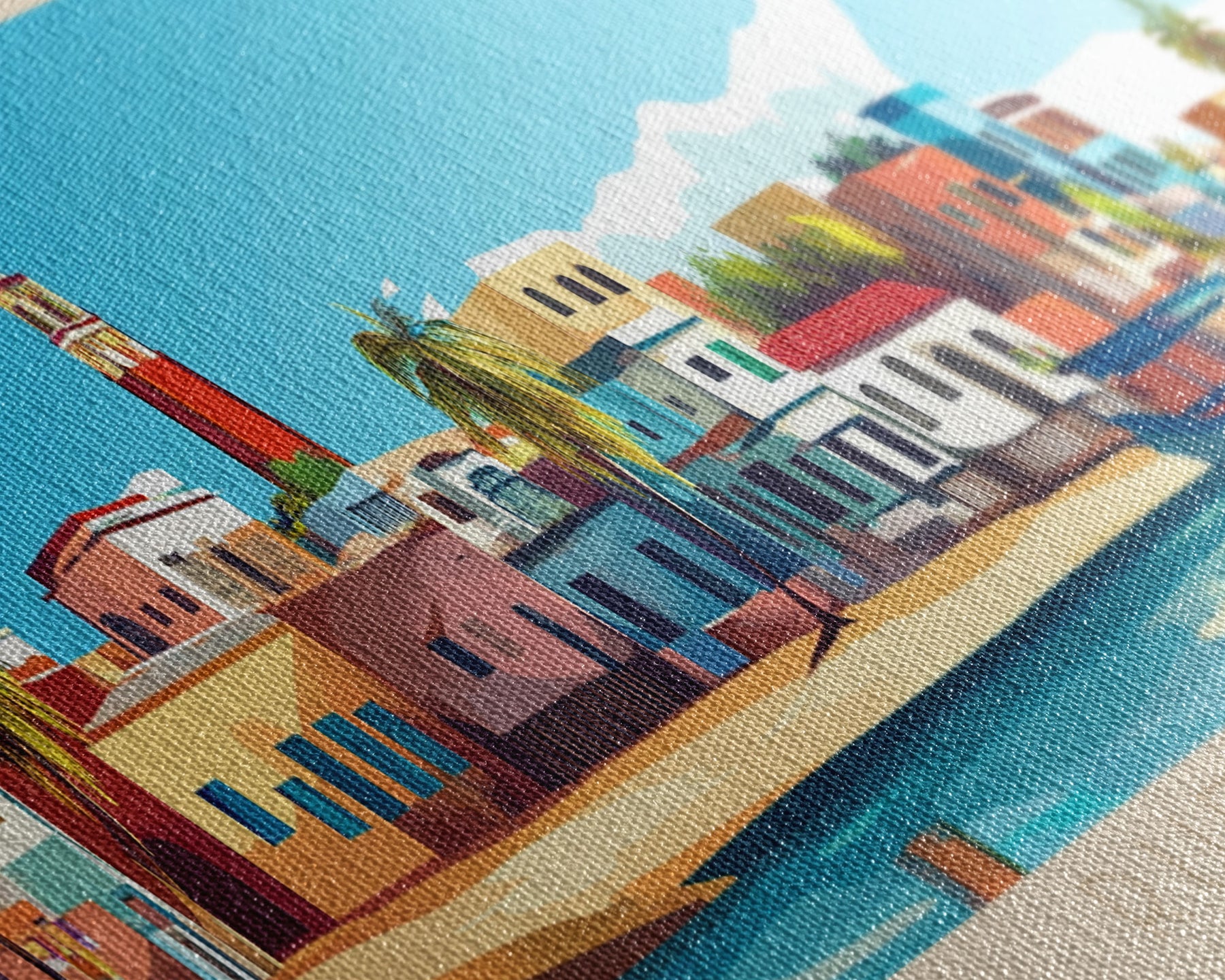 Most of our canvases are made in the USA, with the exception of canvases ordered with the light oak unstained frames, and any large canvases (24x48, 30x60, 16x48 and 20x60) ordered WITH a frame. These are temporarily made in and shipped from Europe, while we try to find a more consistent supplier in the USA.