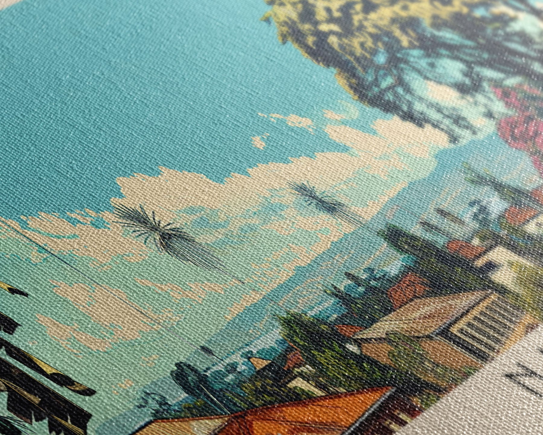 Most of our canvases are made in the USA, with the exception of canvases ordered with the light oak unstained frames, and any large canvases (24x48, 30x60, 16x48 and 20x60) ordered WITH a frame. These are temporarily made in and shipped from Europe, while we try to find a more consistent supplier in the USA.