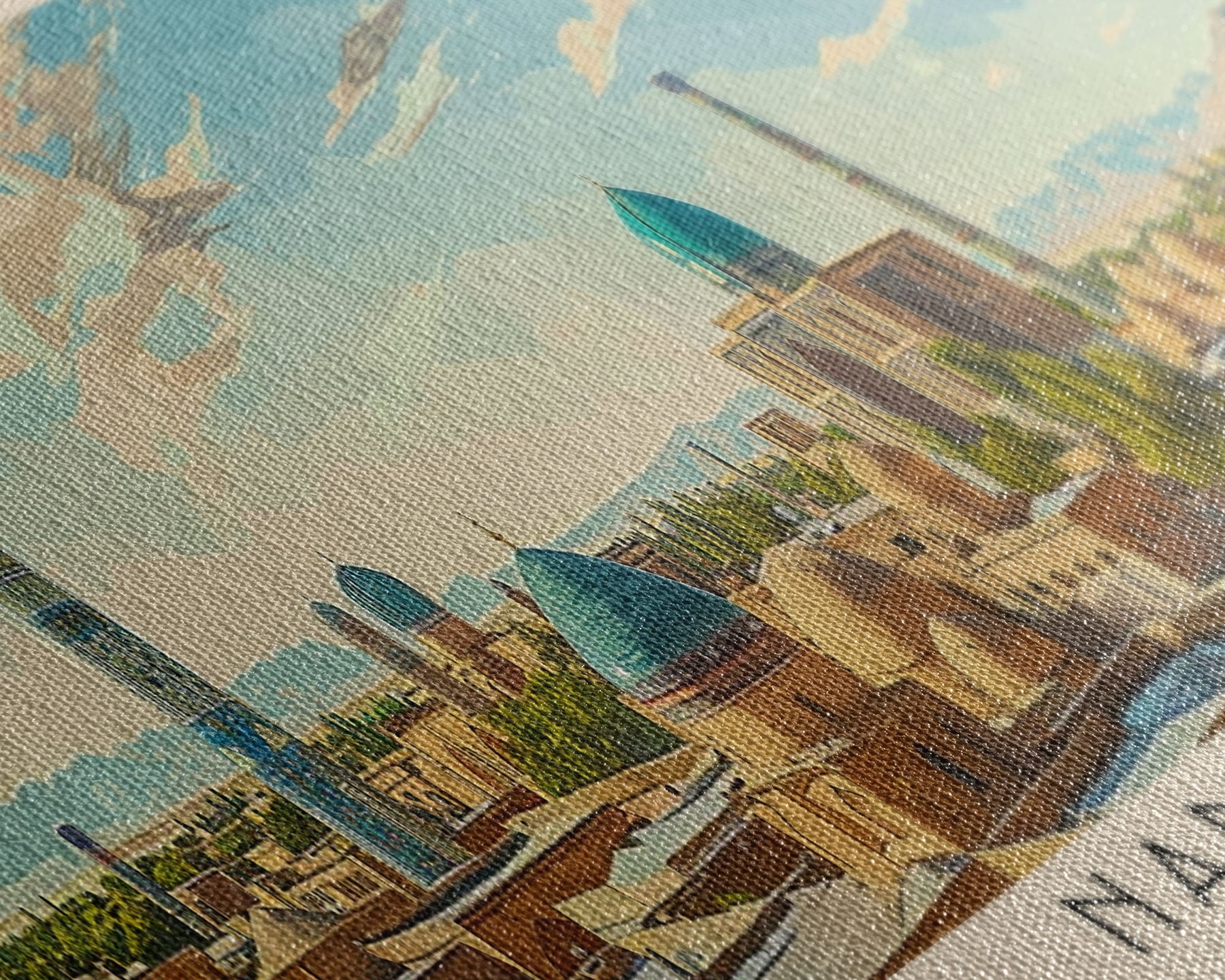 Most of our canvases are made in the USA, with the exception of canvases ordered with the light oak unstained frames, and any large canvases (24x48, 30x60, 16x48 and 20x60) ordered WITH a frame. These are temporarily made in and shipped from Europe, while we try to find a more consistent supplier in the USA.