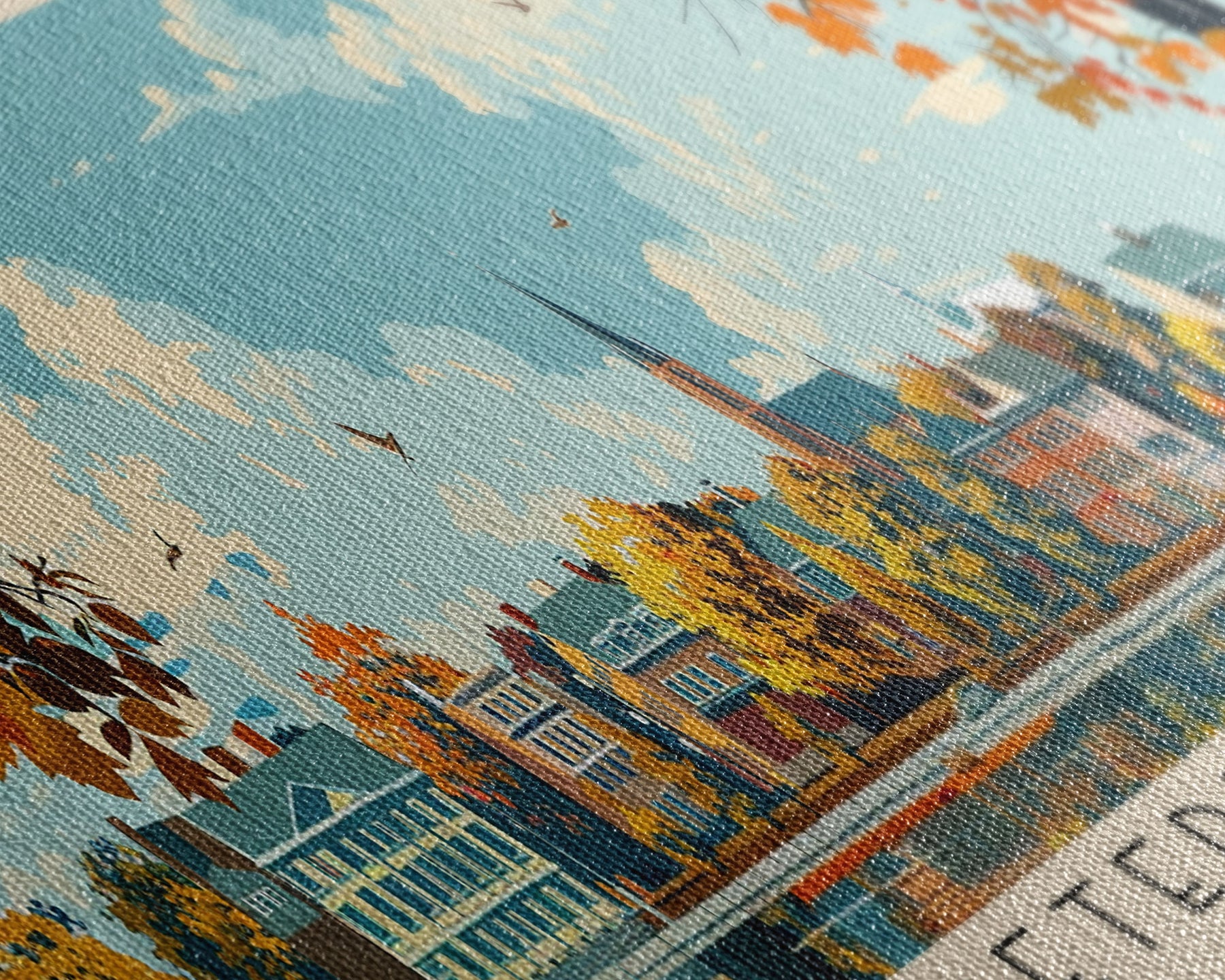 Most of our canvases are made in the USA, with the exception of canvases ordered with the light oak unstained frames, and any large canvases (24x48, 30x60, 16x48 and 20x60) ordered WITH a frame. These are temporarily made in and shipped from Europe, while we try to find a more consistent supplier in the USA.