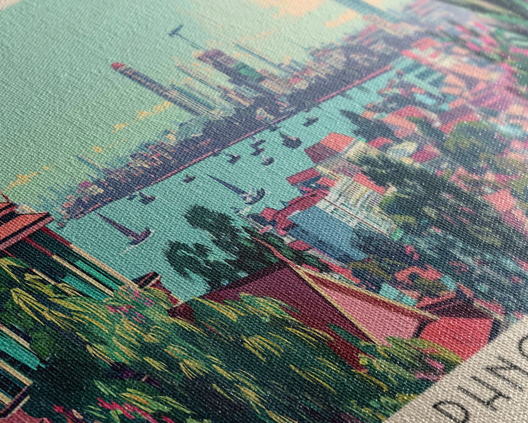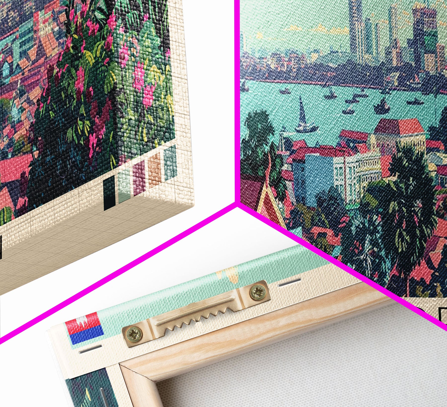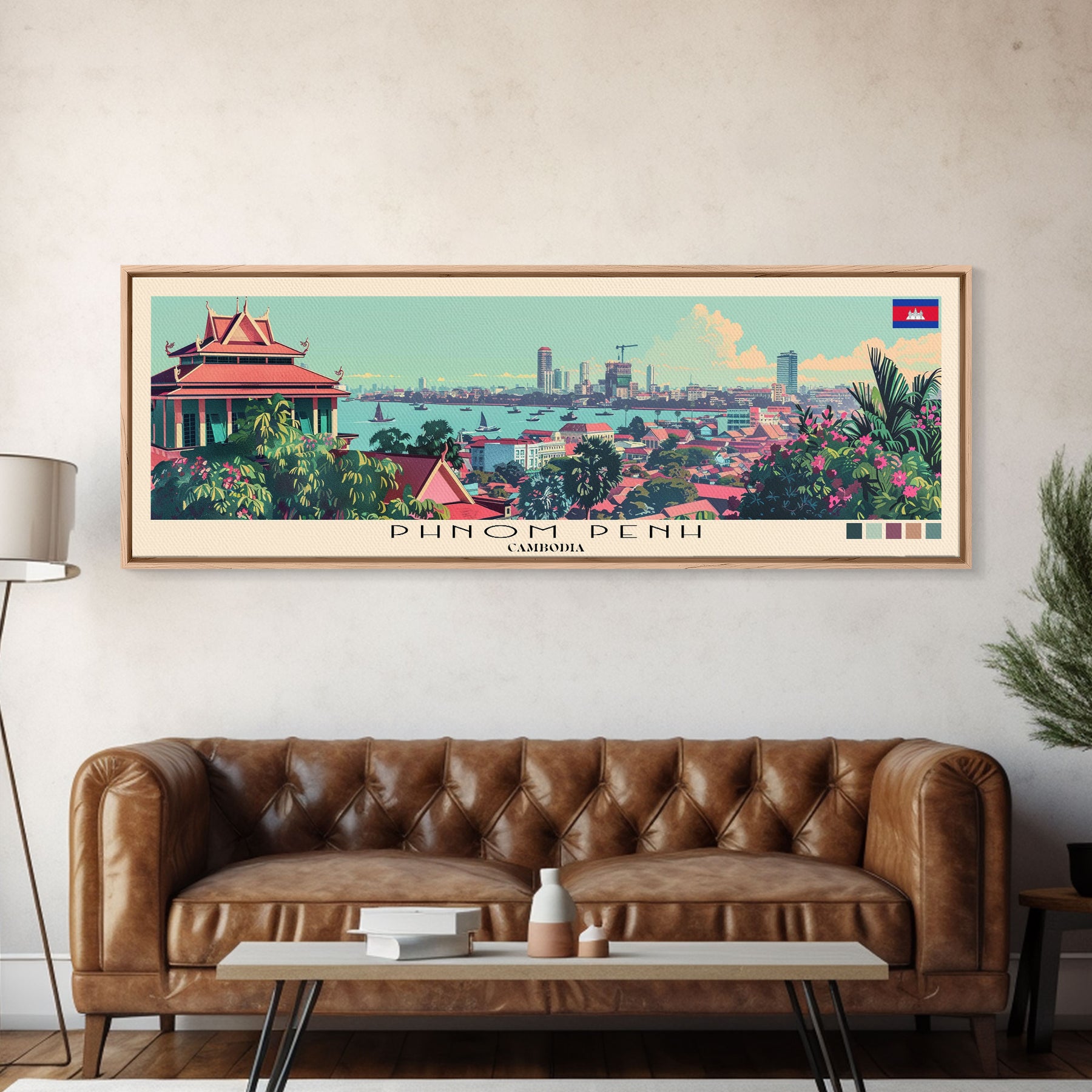Phnom Penh, Cambodia Panoramic Canvas Print, Phnom Penh, Cambodia Painting, Cambodia Art, Phnom Penh Travel Poster, Travel Art, Guest Room Painting