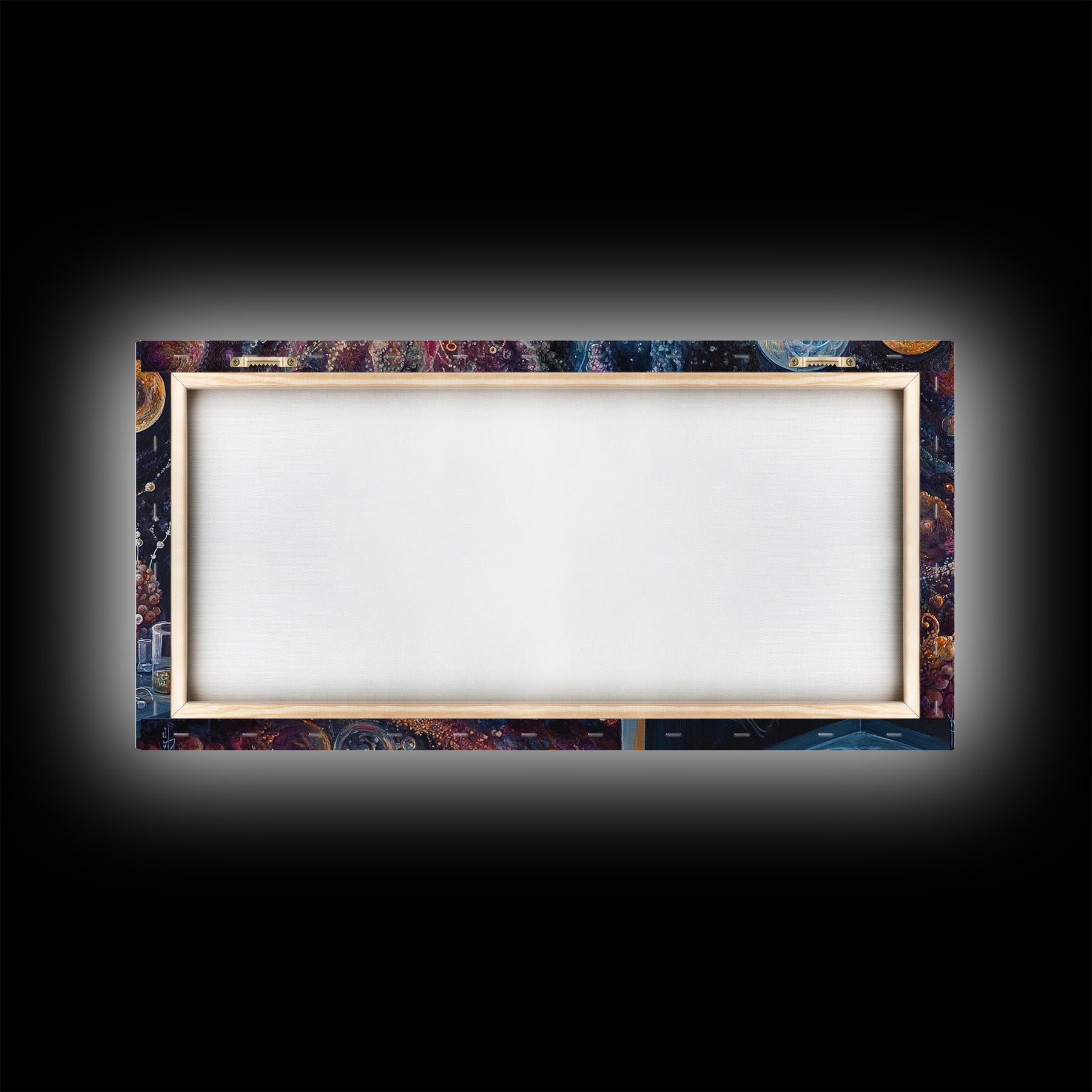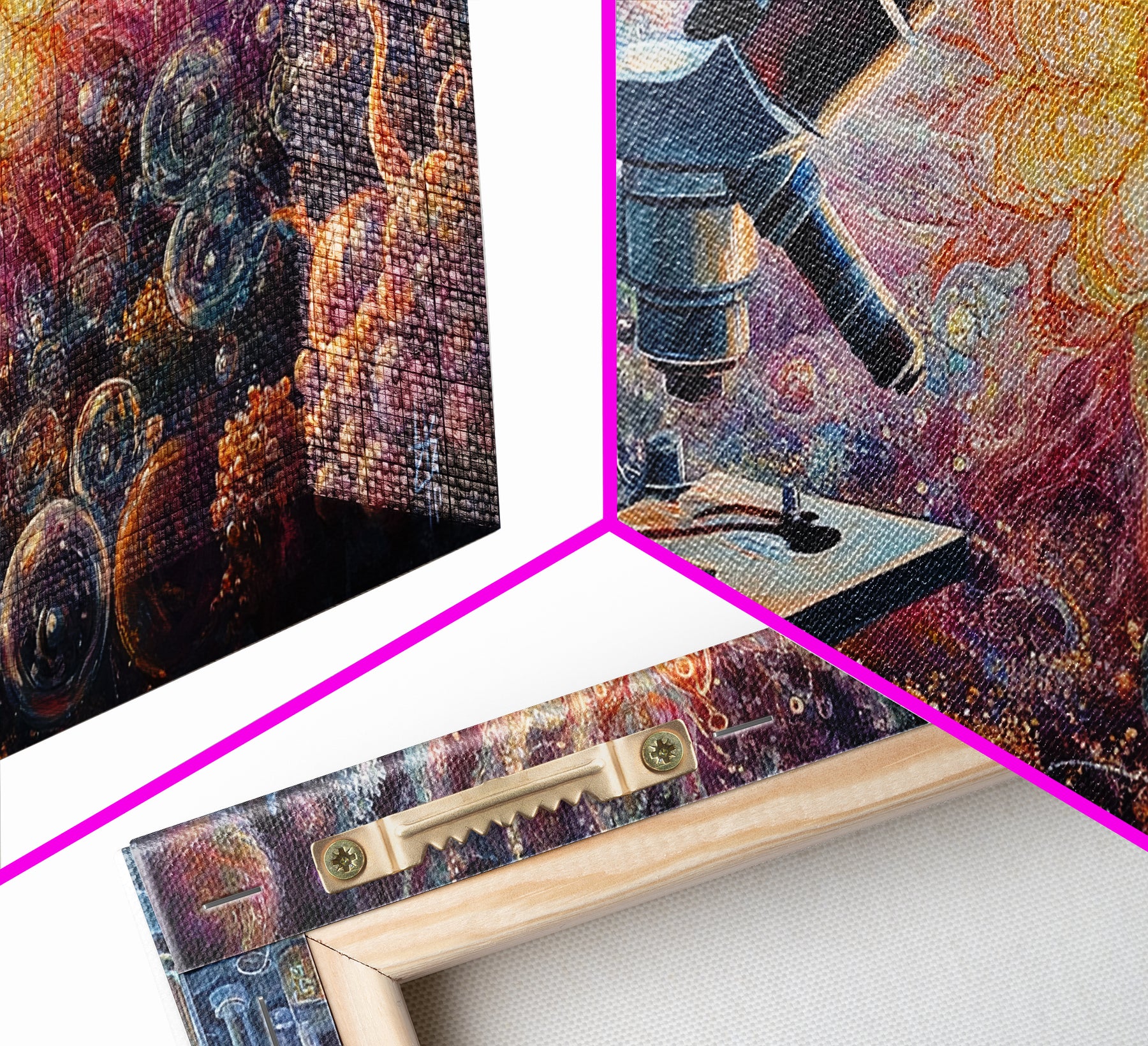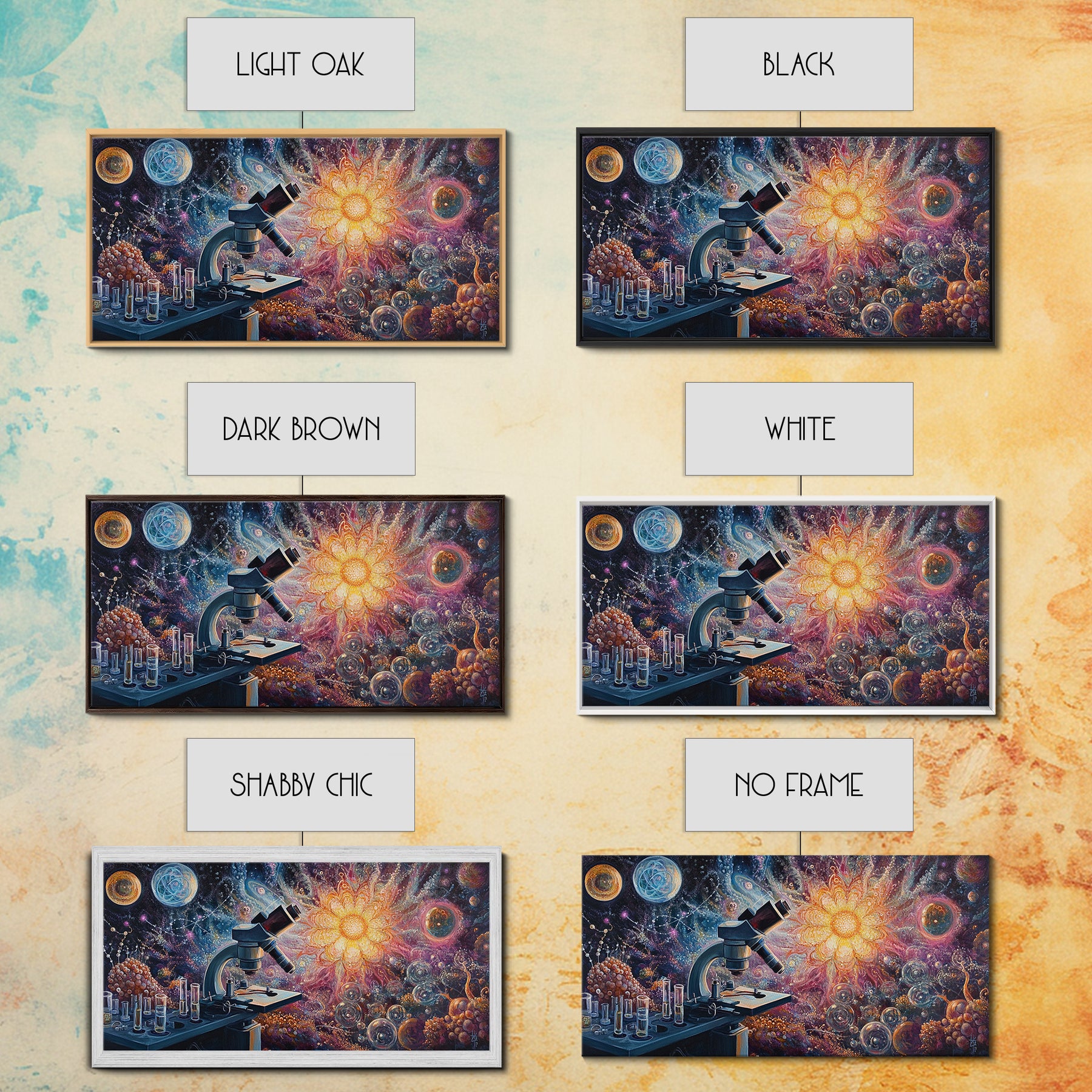 Zen Science Art Framed Canvas Print, Molecular Cosmos Microscope Painting, Moody Therapy Wall Decor, Above Sofa Living Room Art